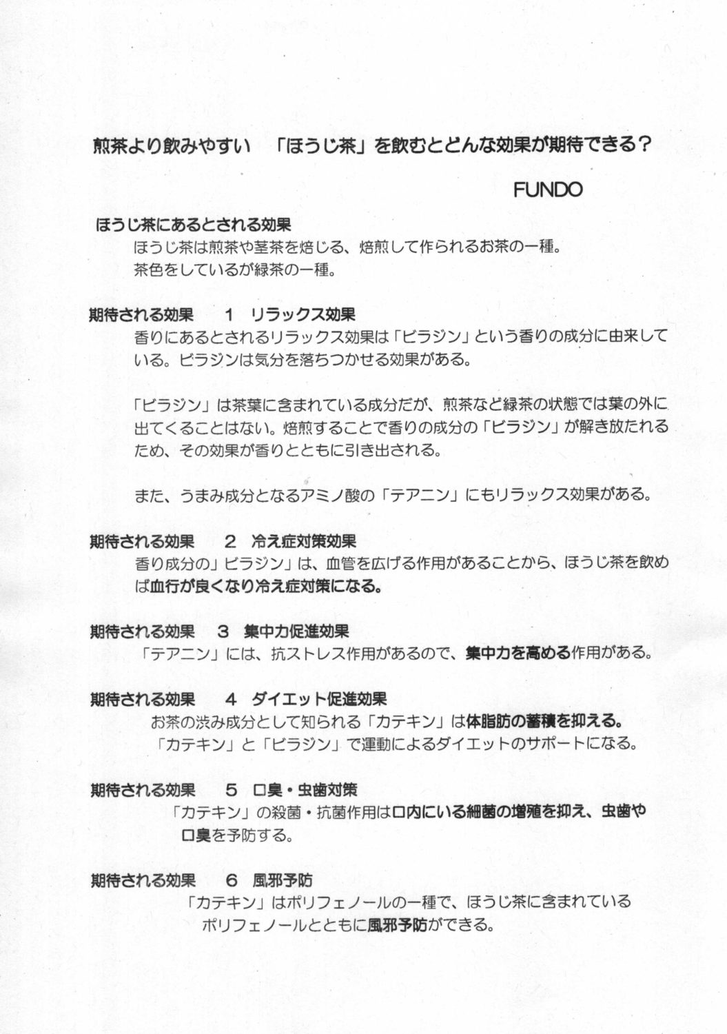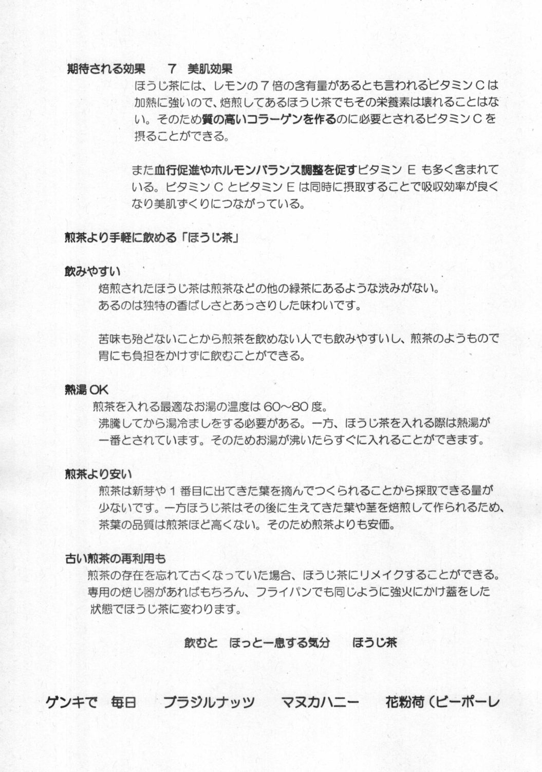 ほうじ茶に期待される効果