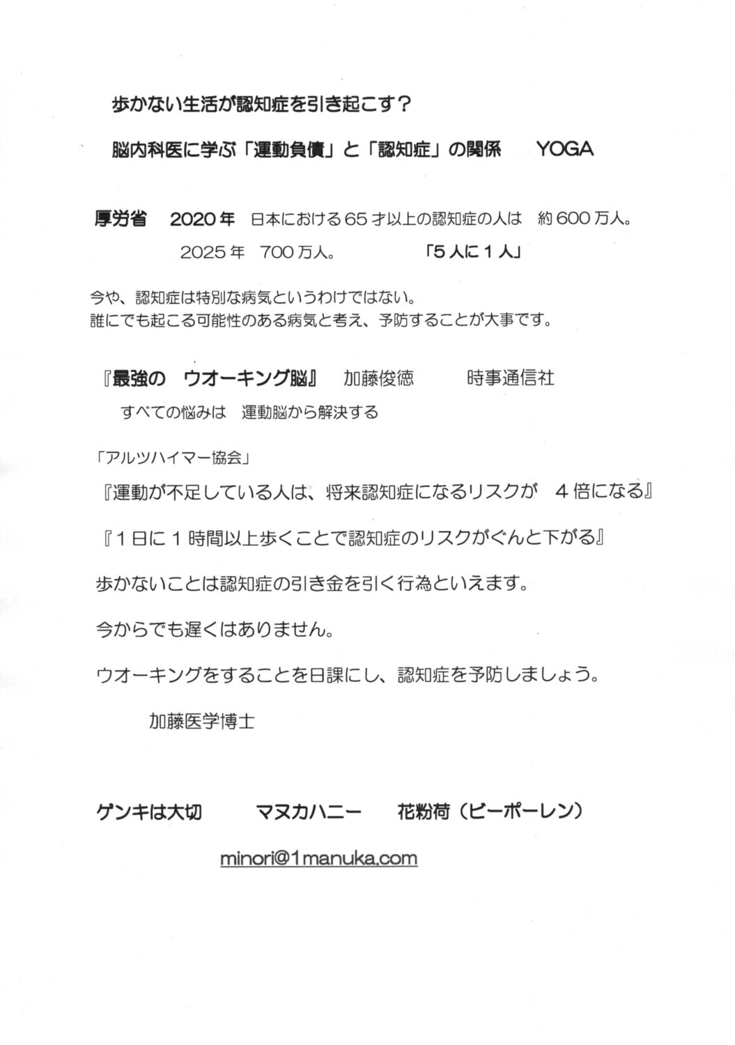 歩かない生活が認知症を引き起こす?