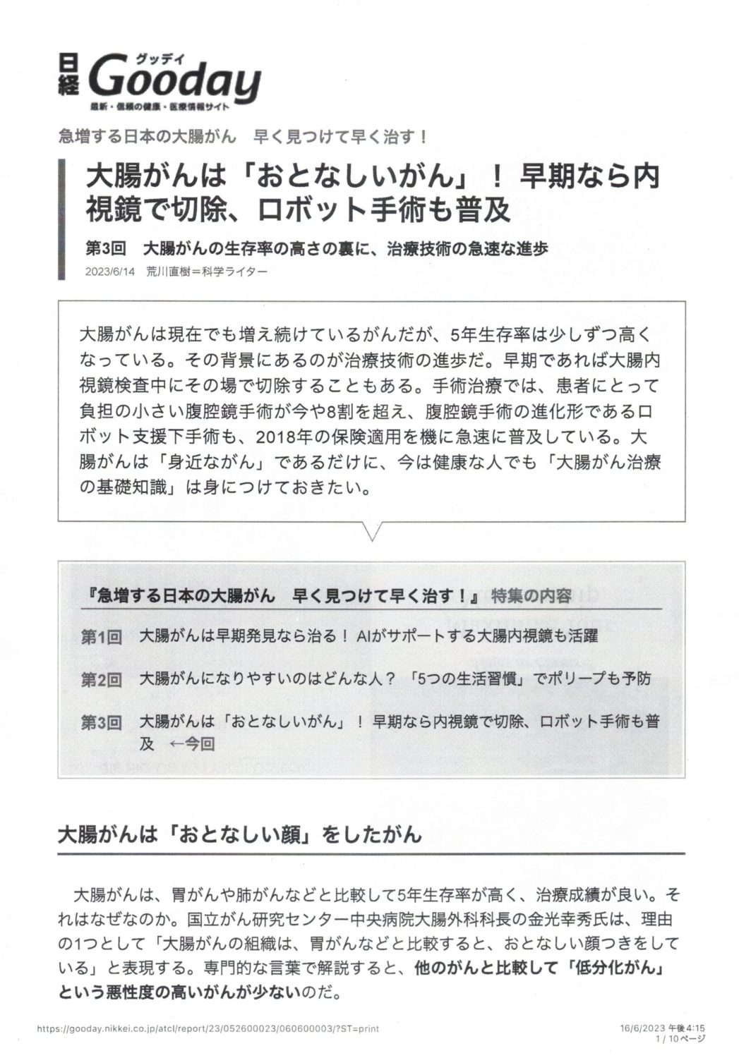 大腸がんロボット手術も普及