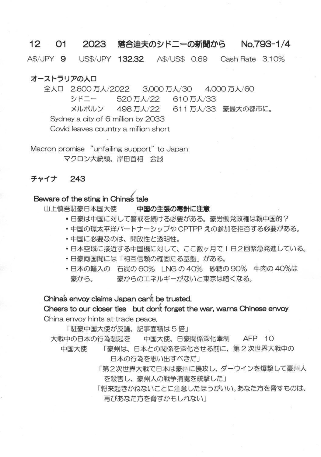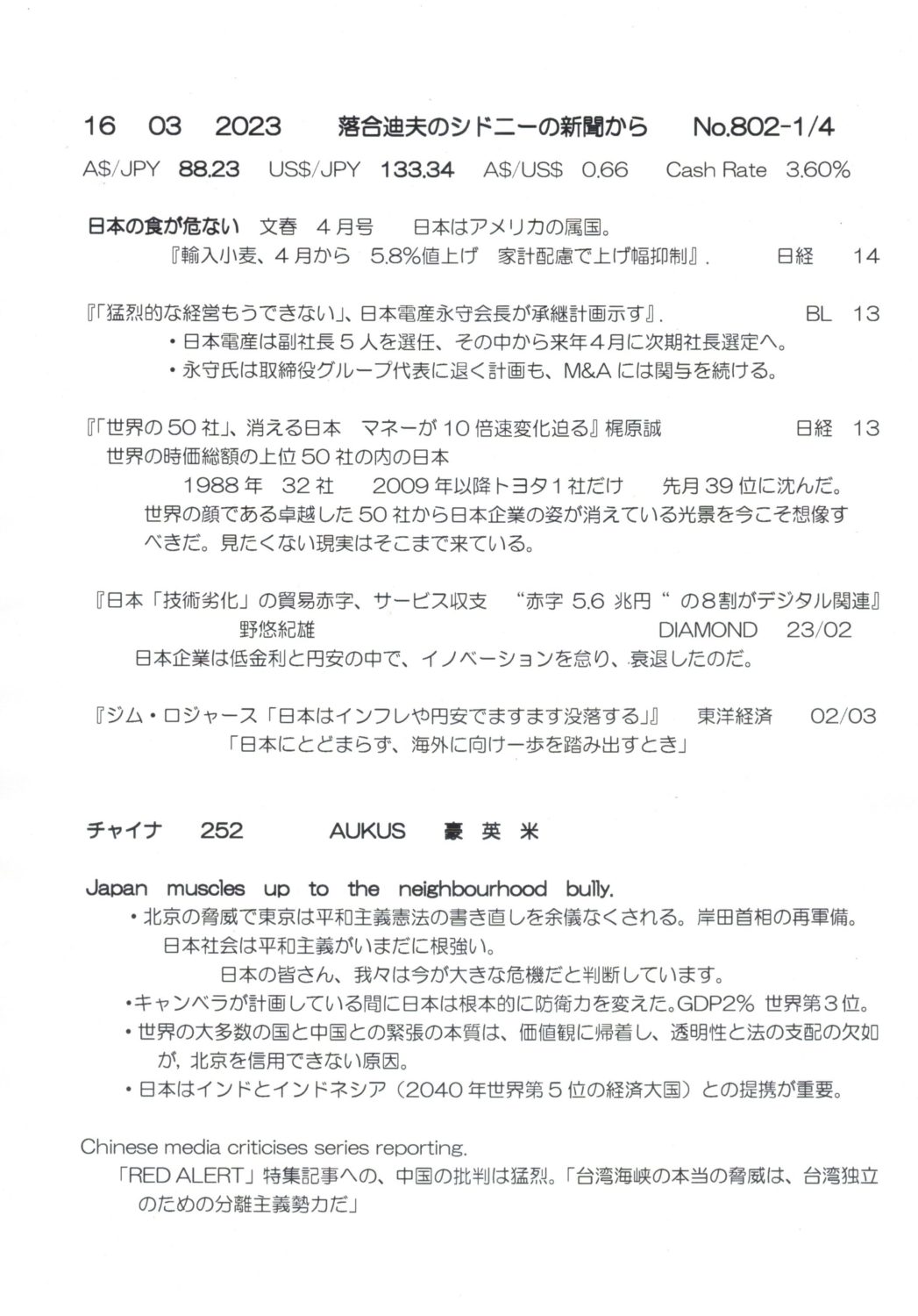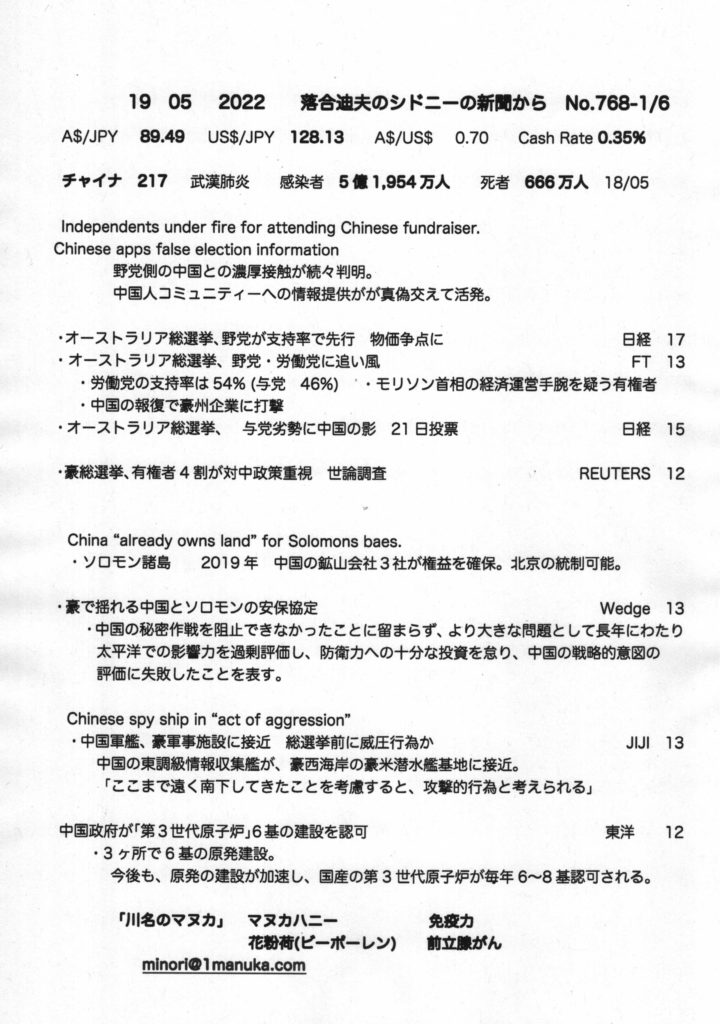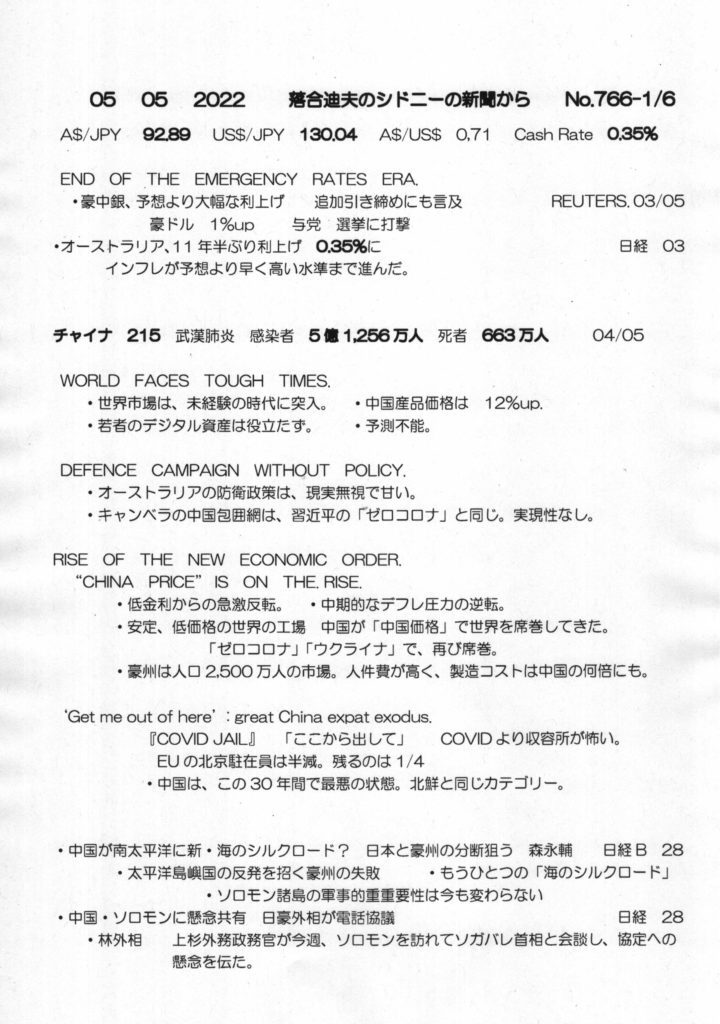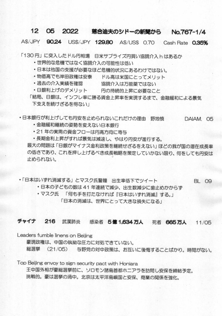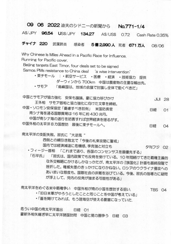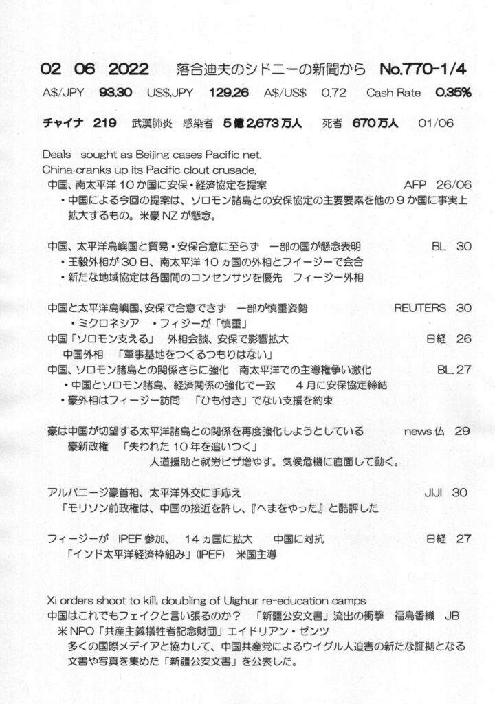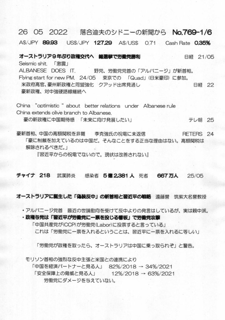 【落合迪夫のシドニーの新聞から】