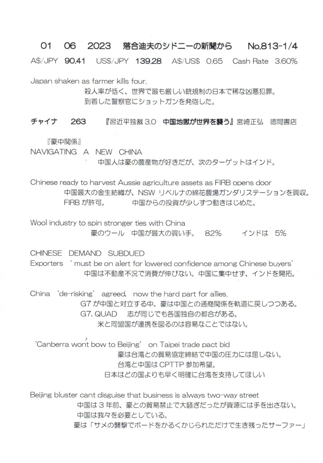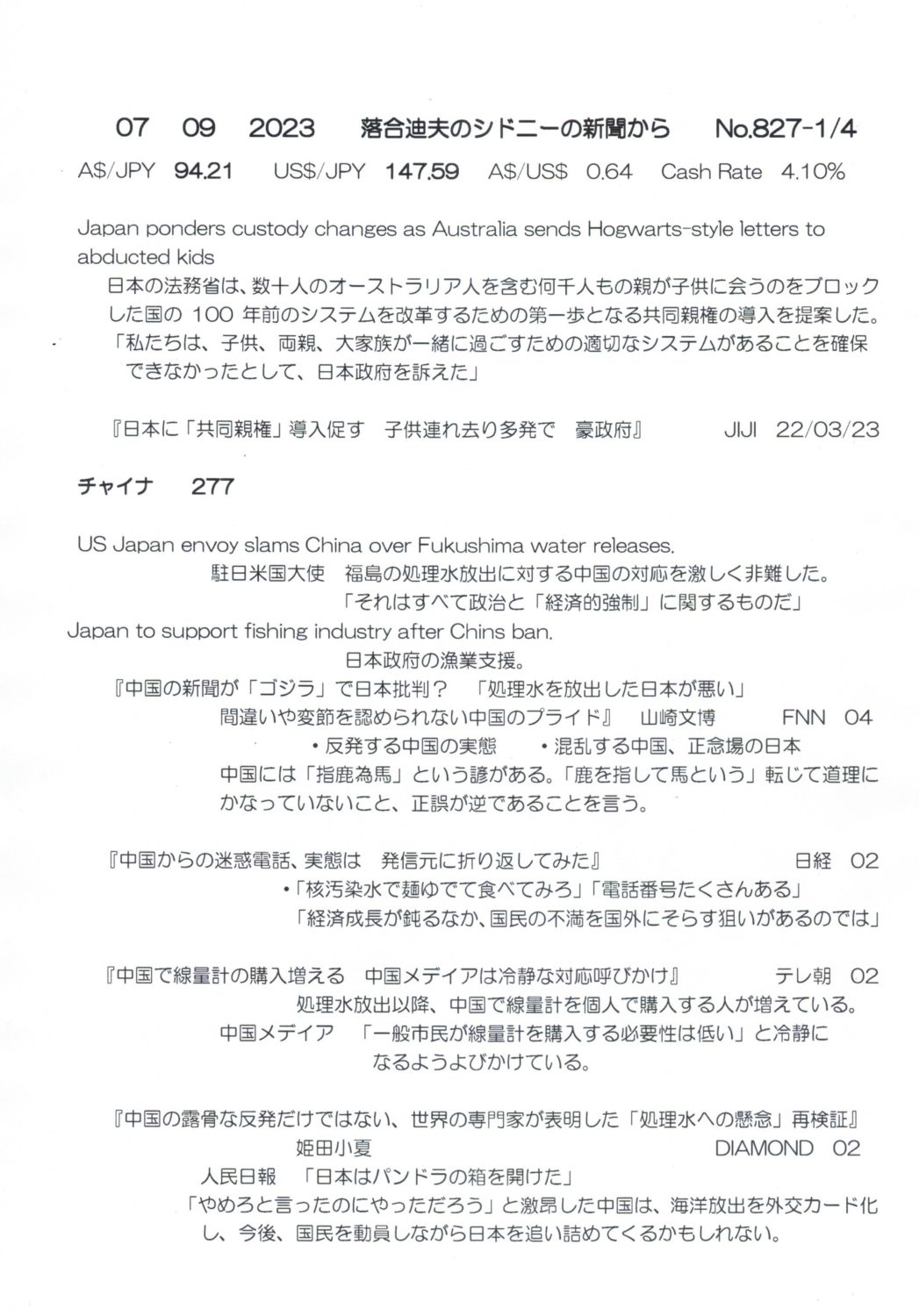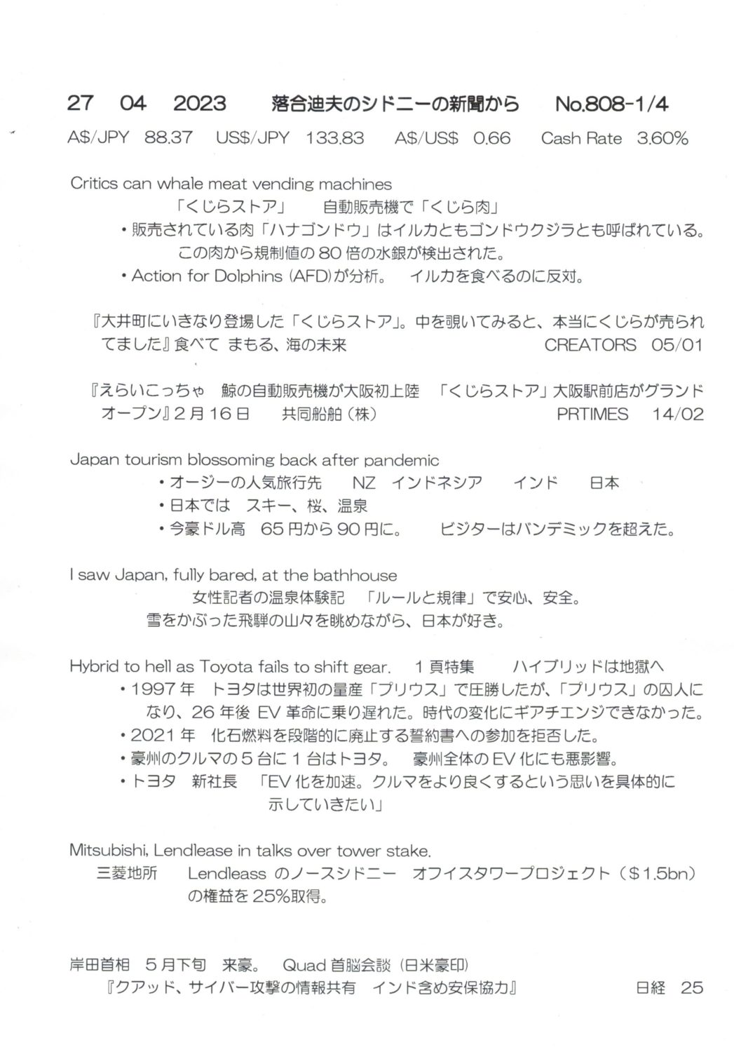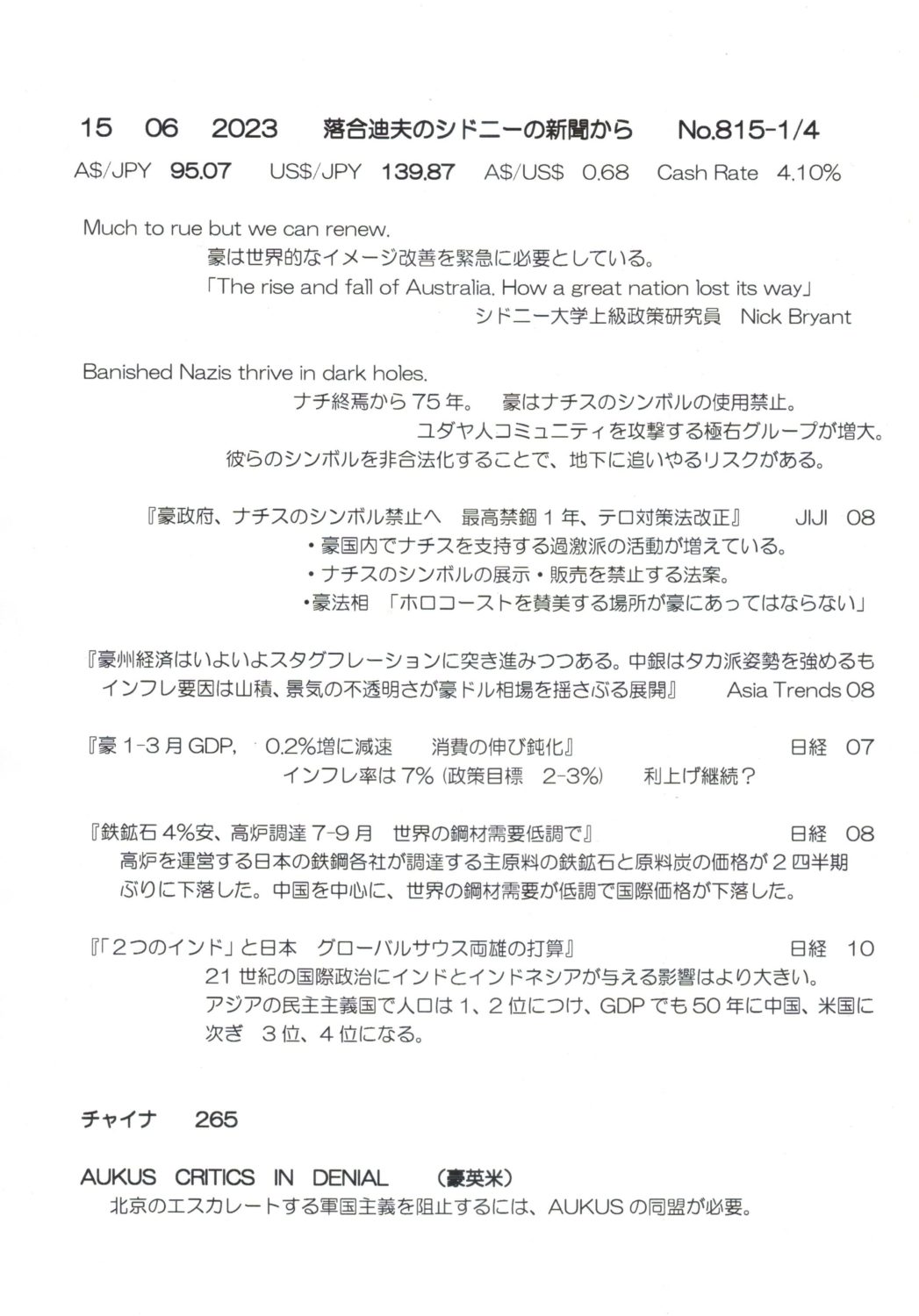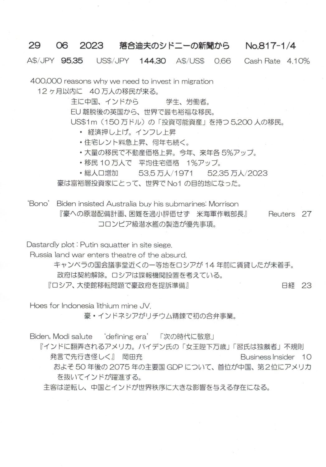【落合迪夫のシドニーの新聞から】