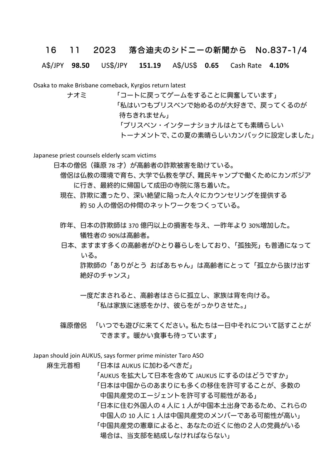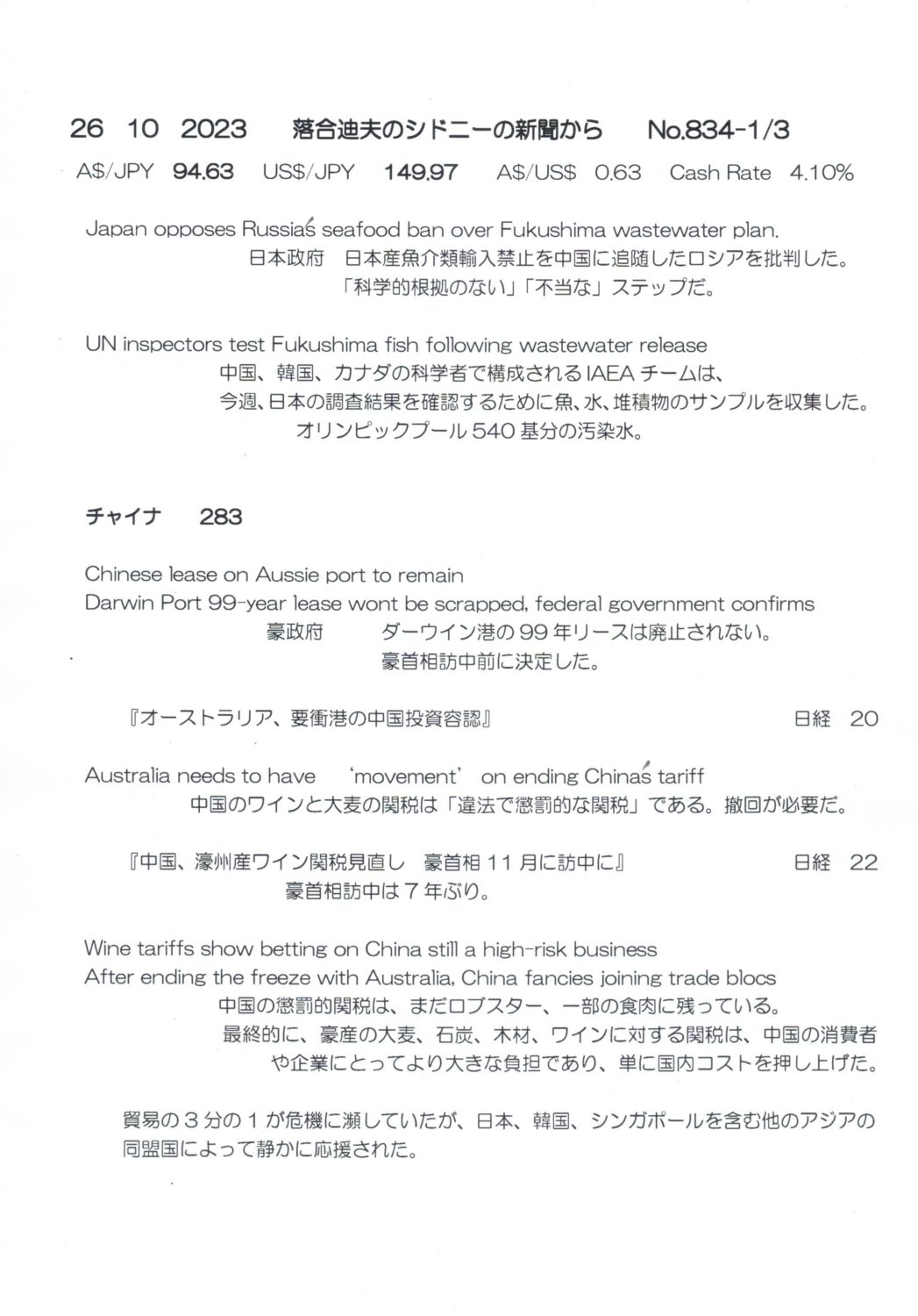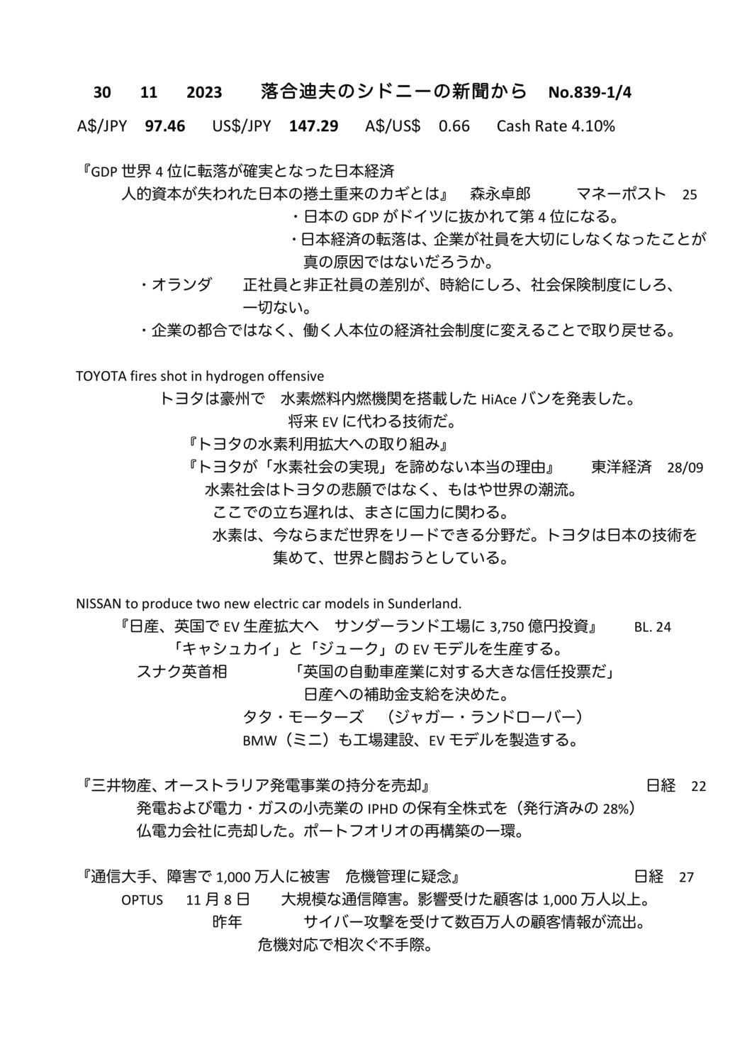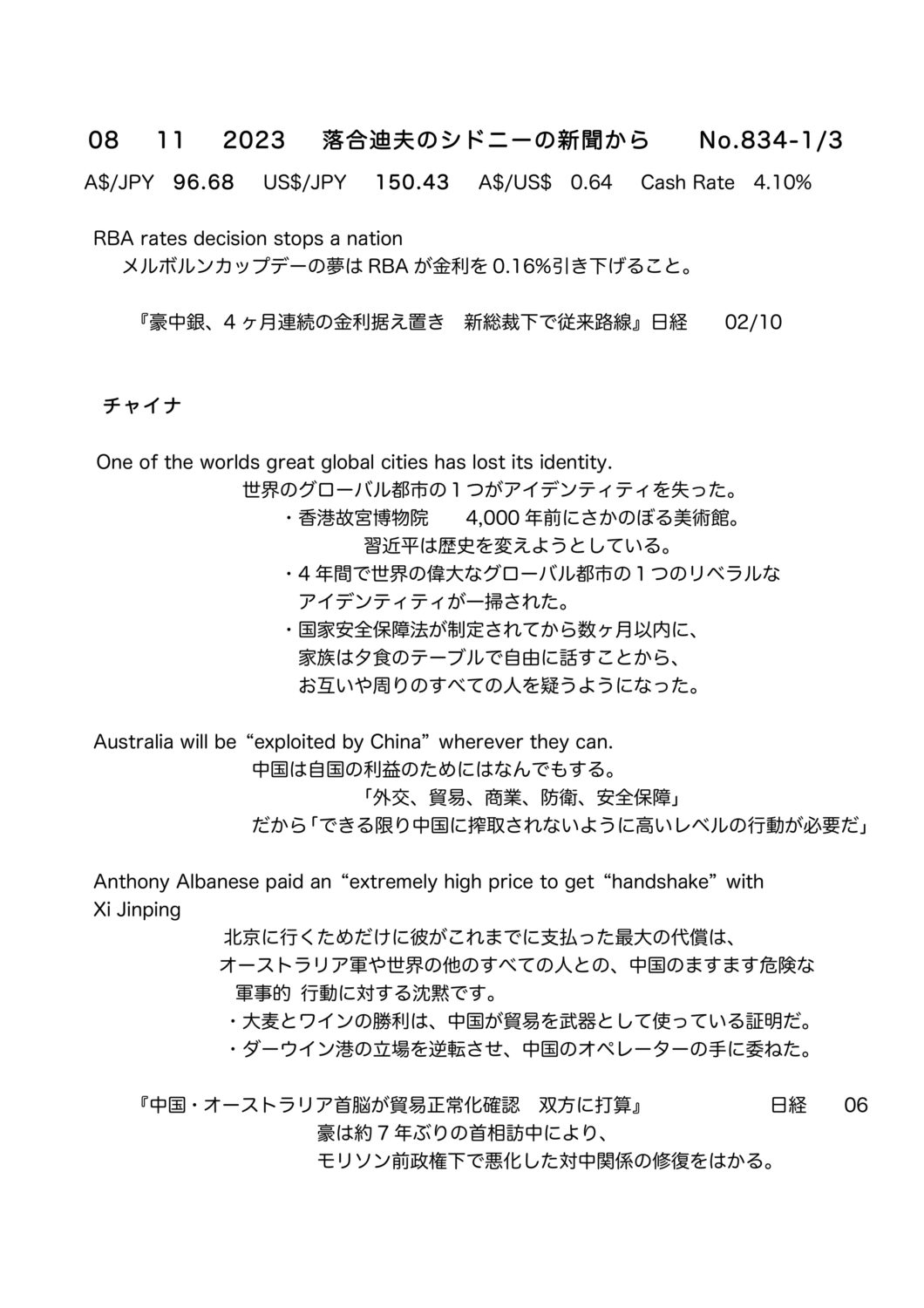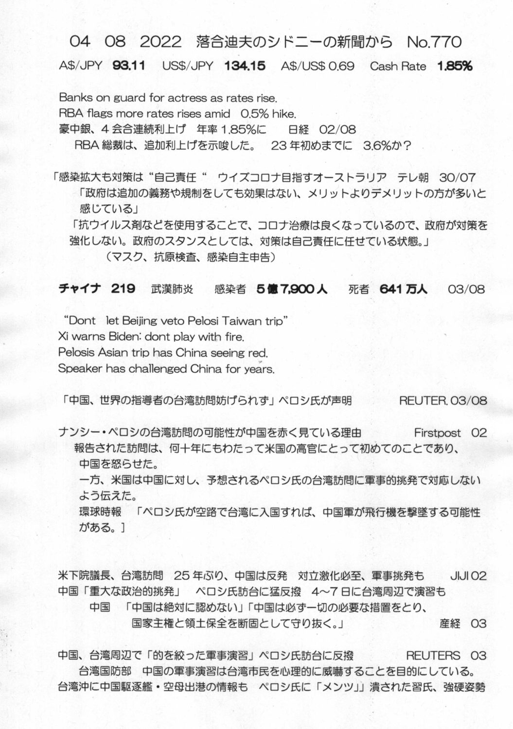 【落合迪夫のシドニーの新聞から】