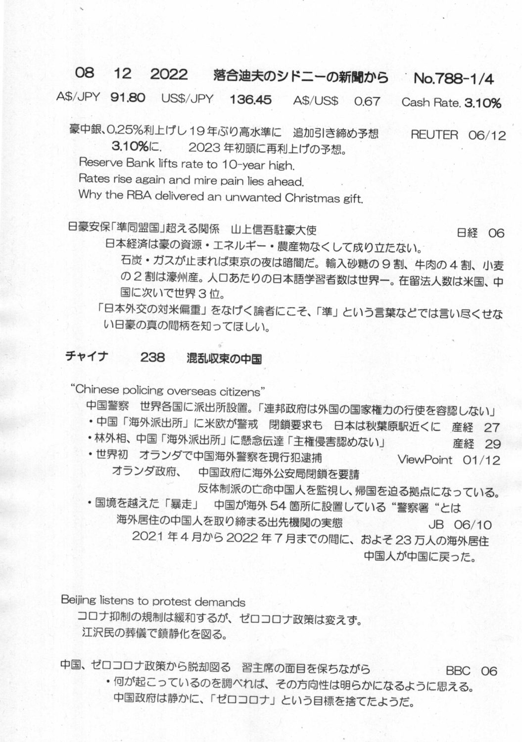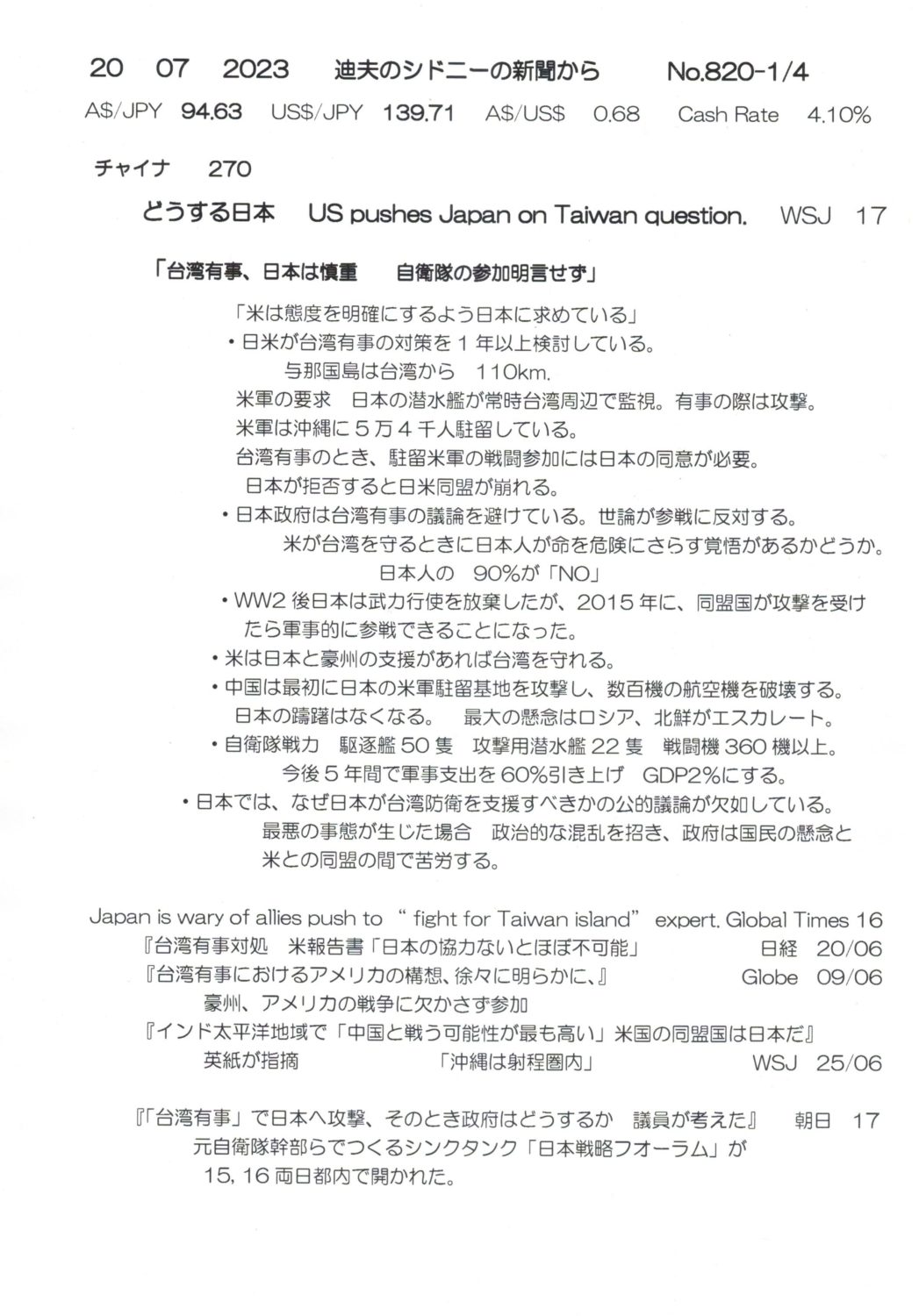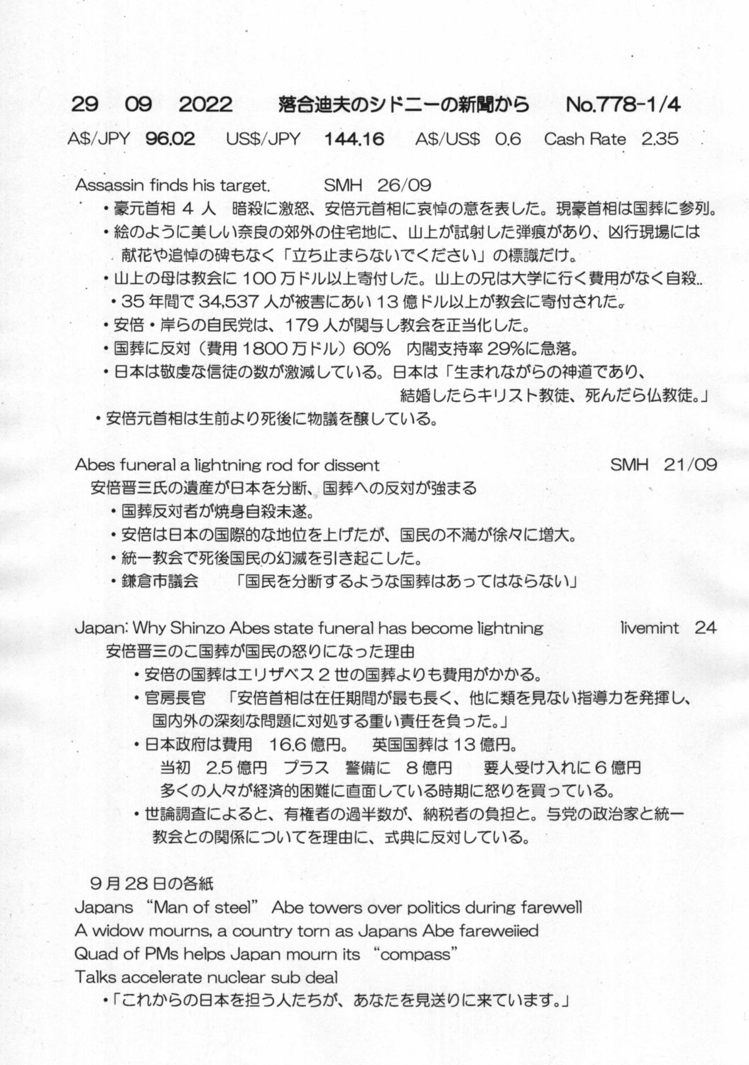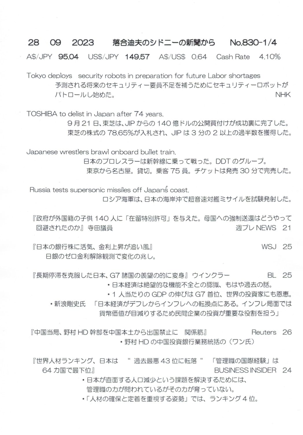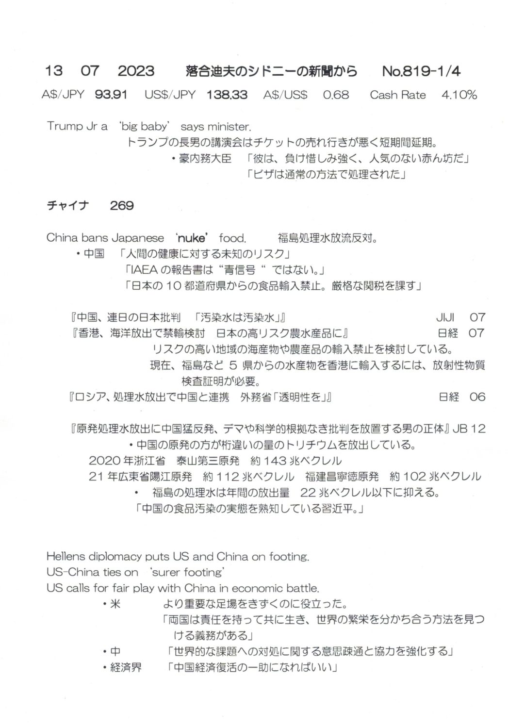 【落合迪夫のシドニーの新聞から】