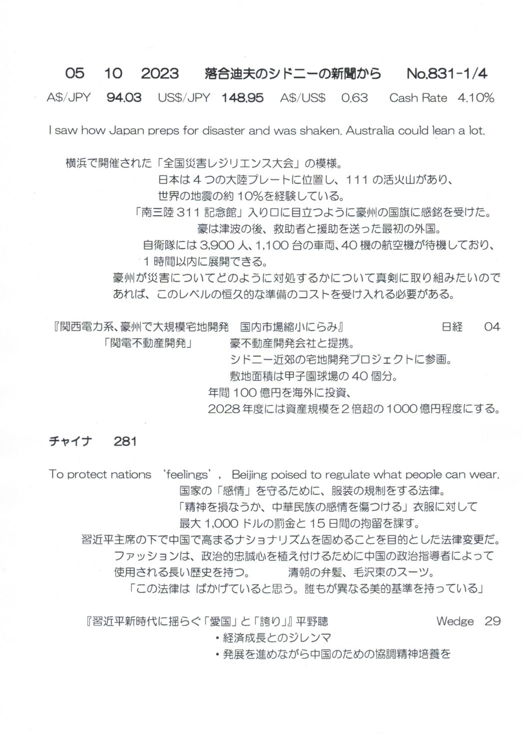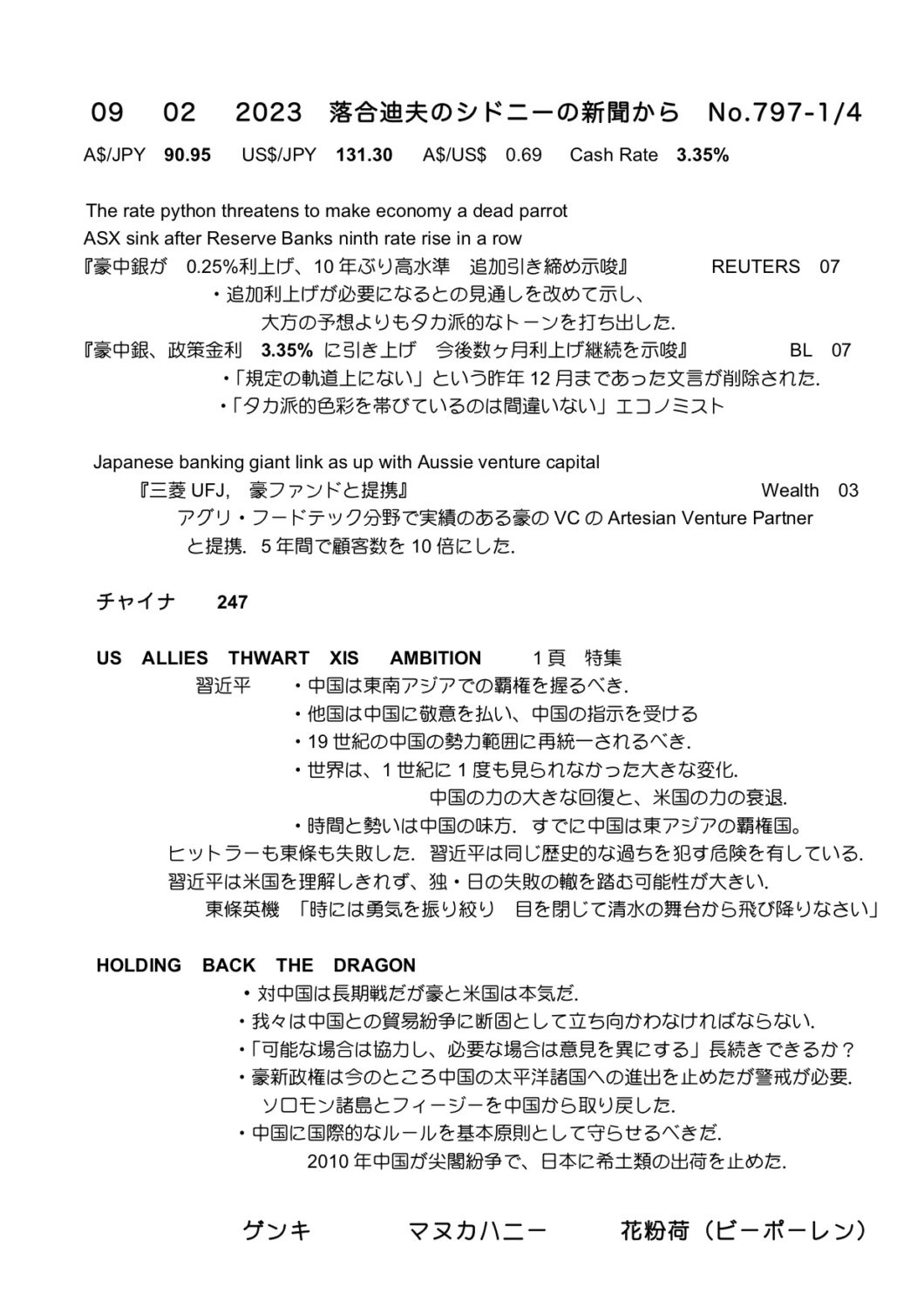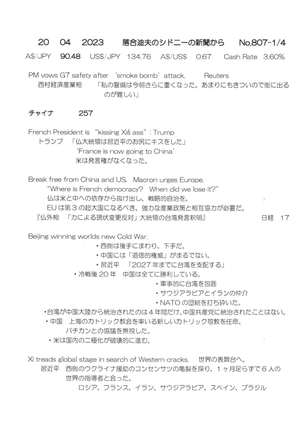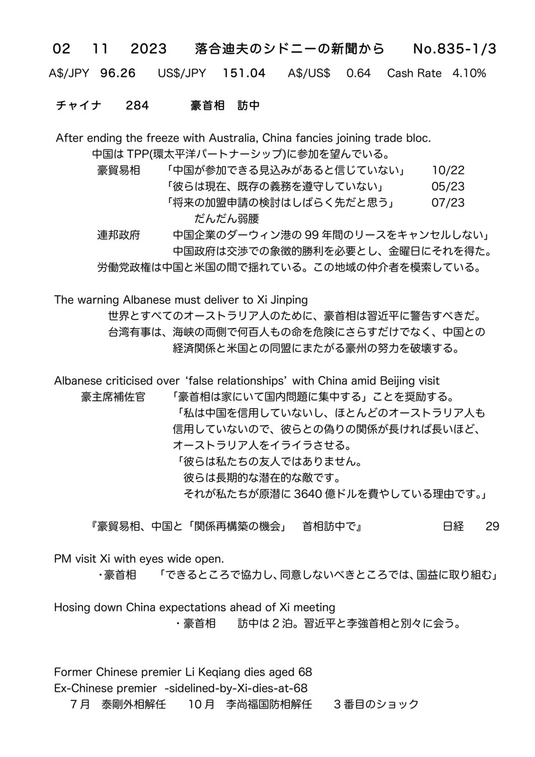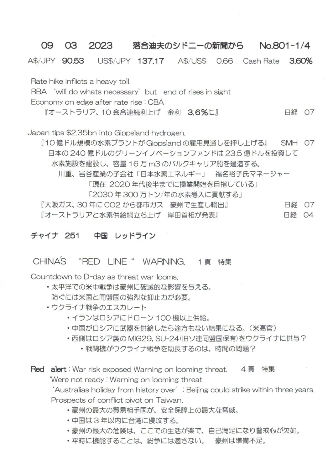 【落合迪夫のシドニーの新聞から】