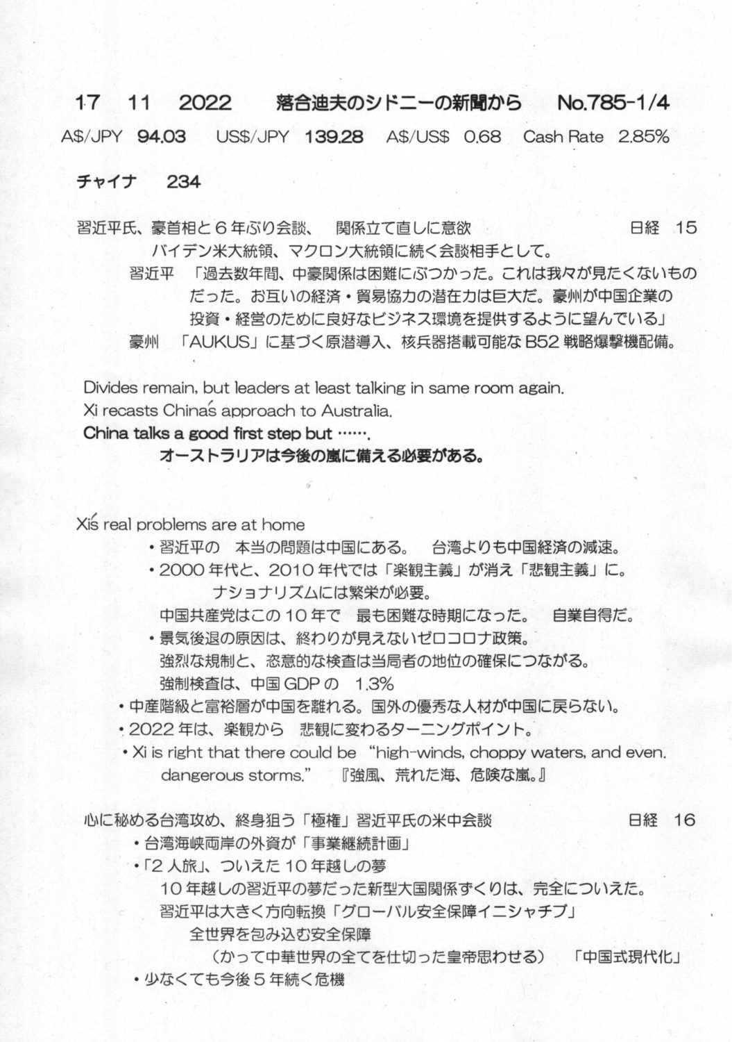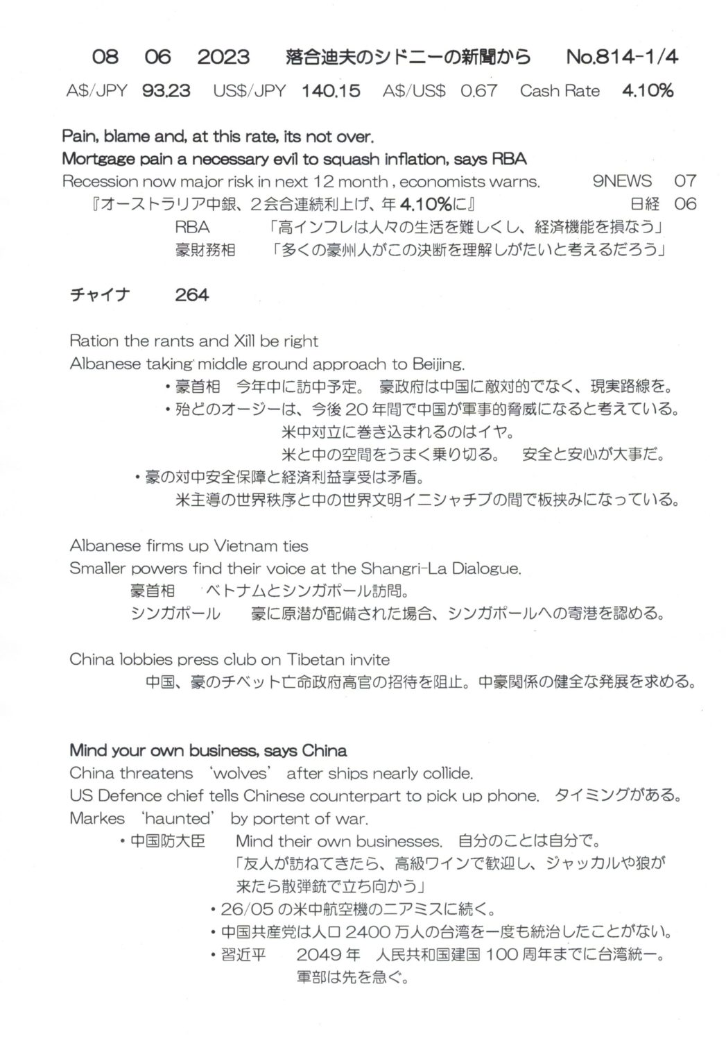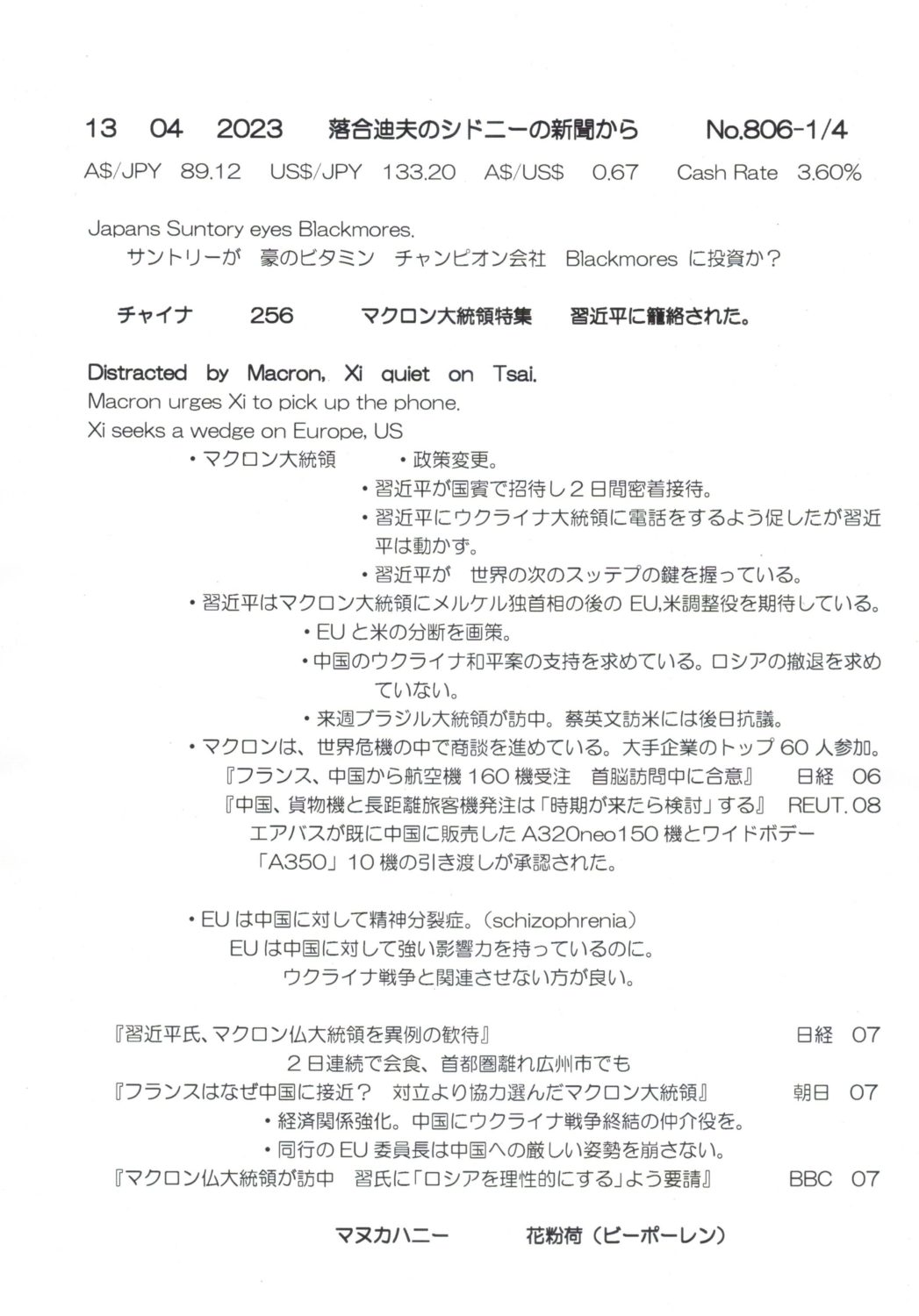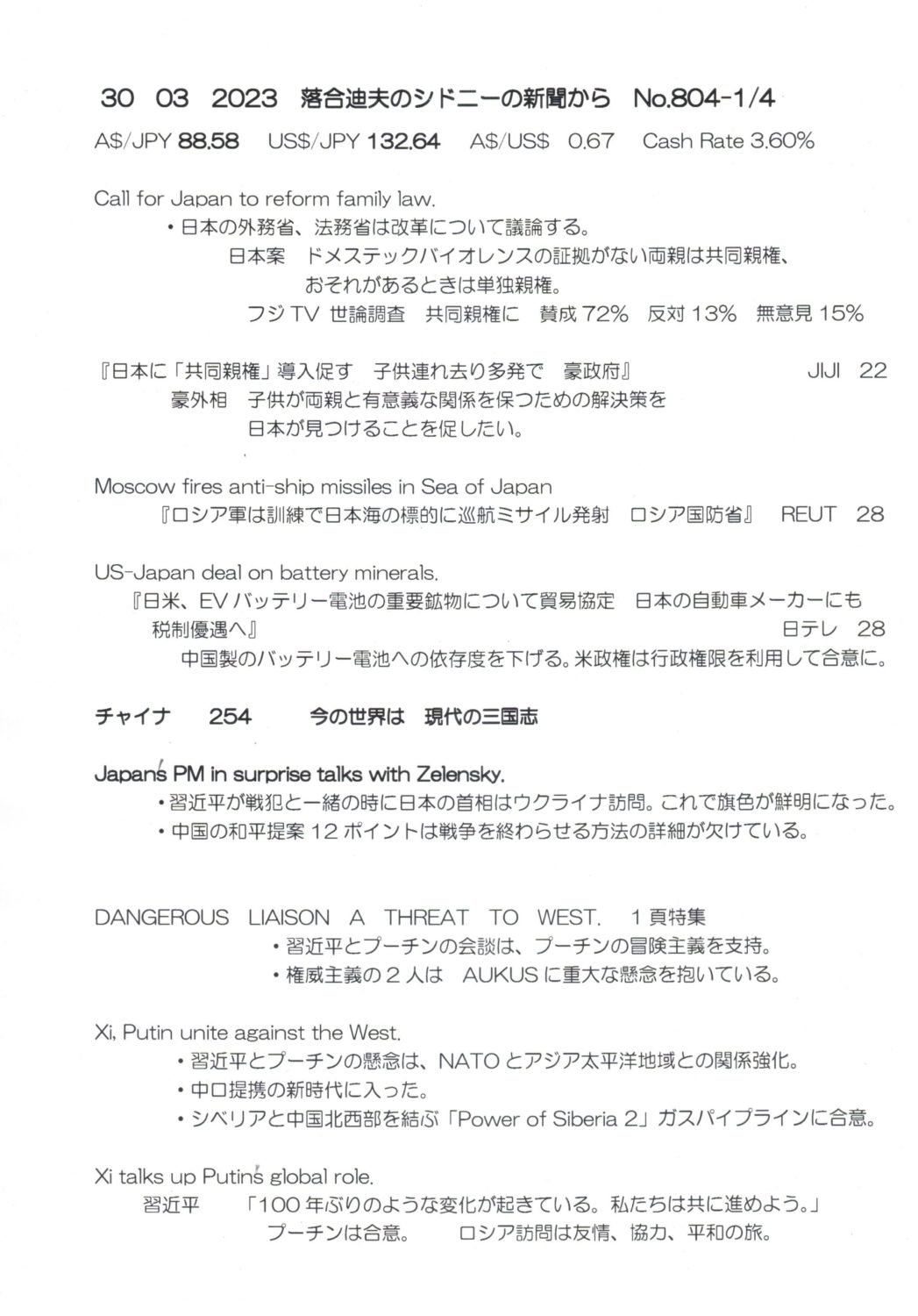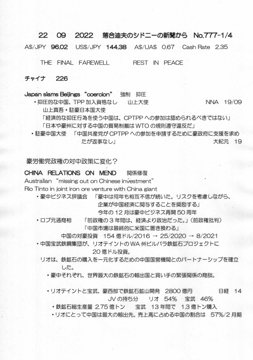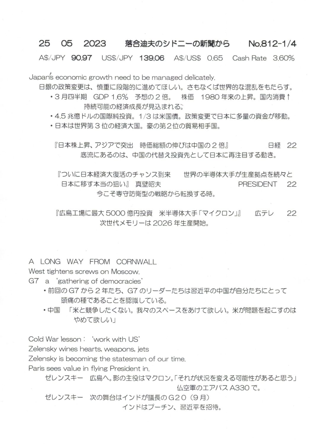 【落合迪夫のシドニーの新聞から】