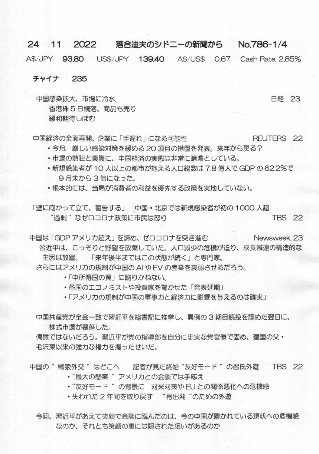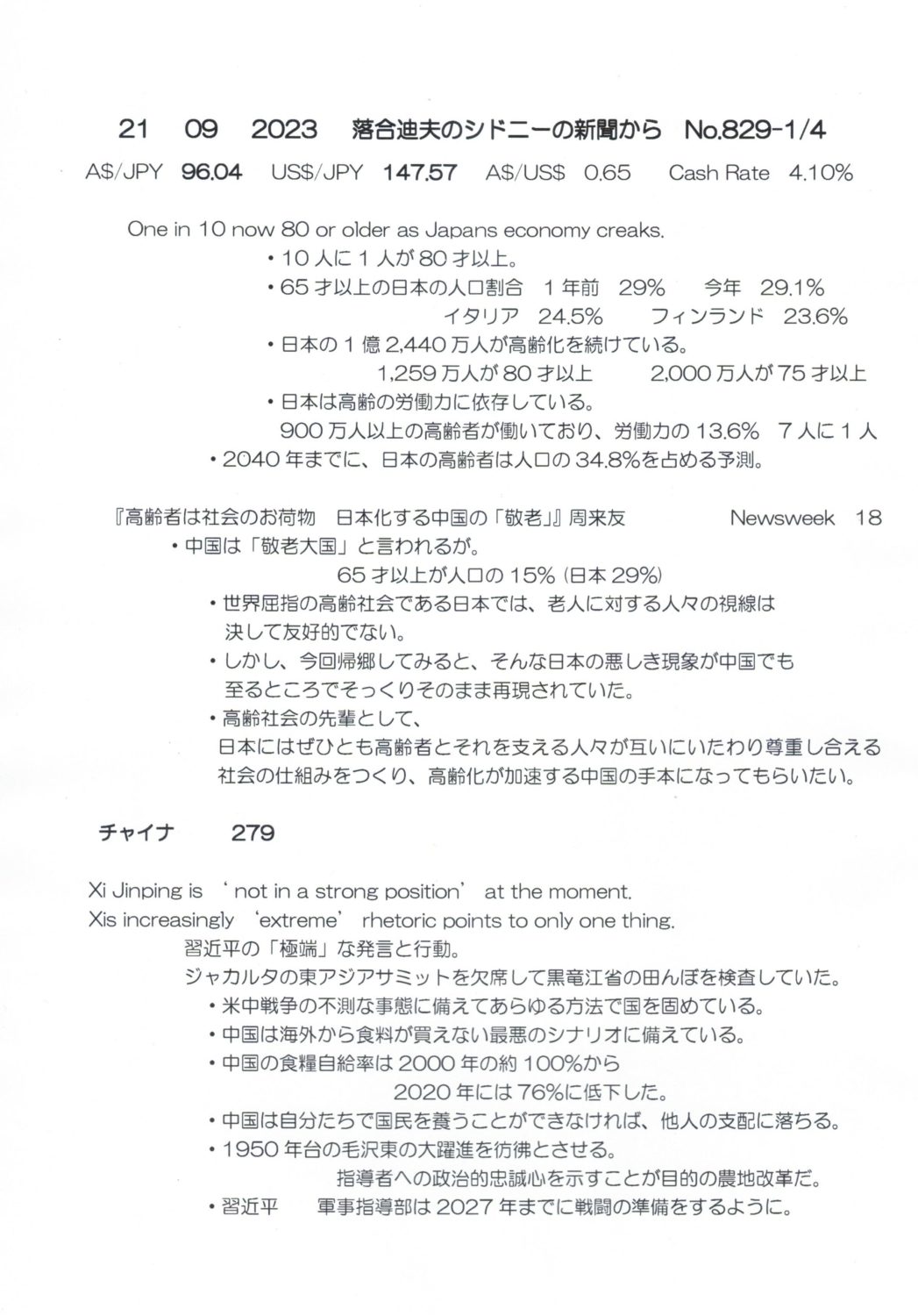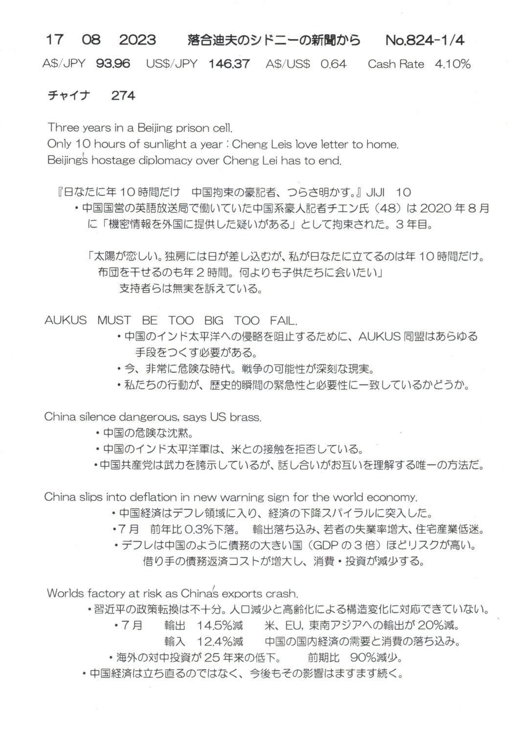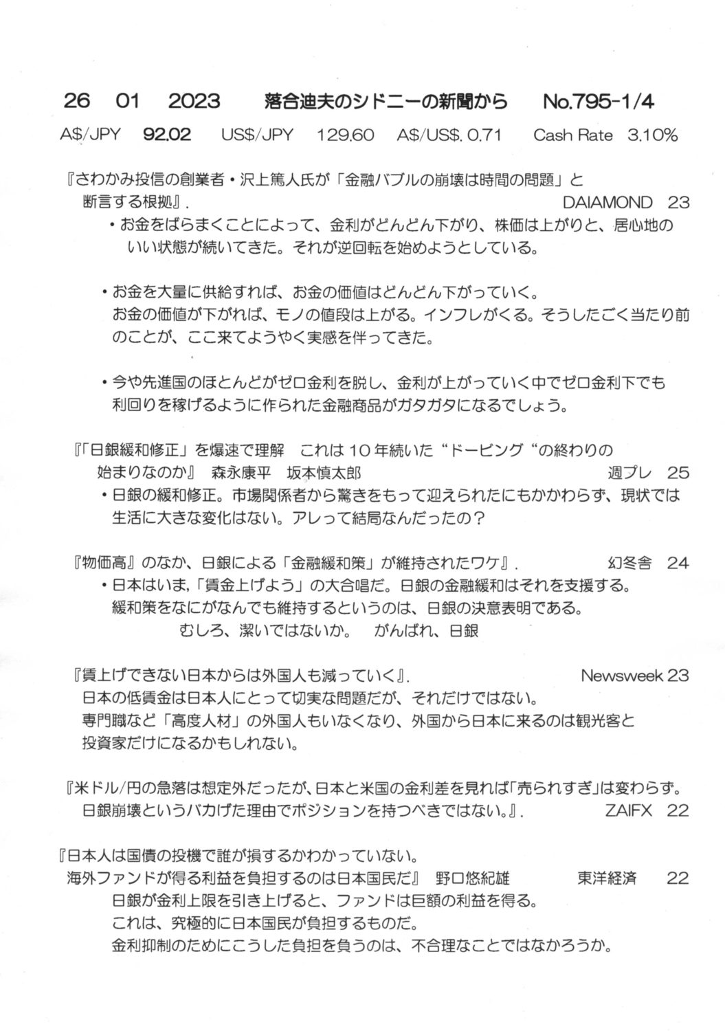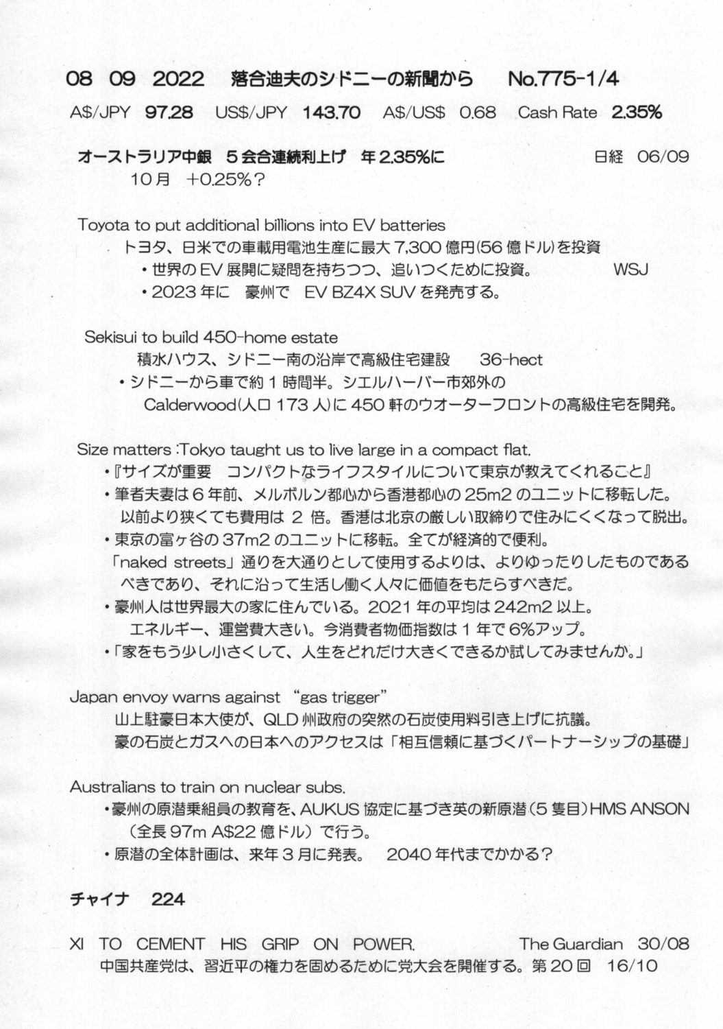 【落合迪夫のシドニーの新聞から】
