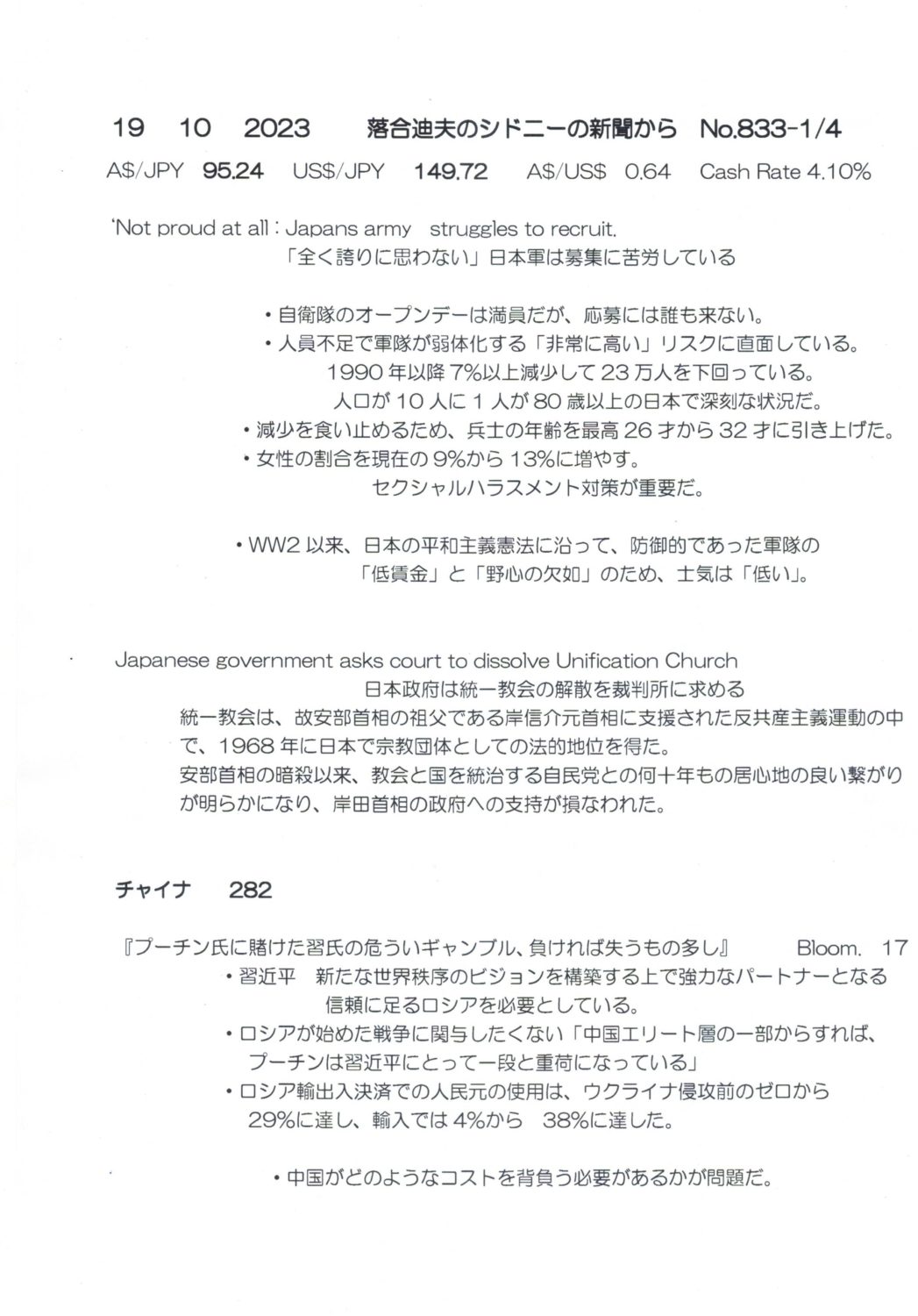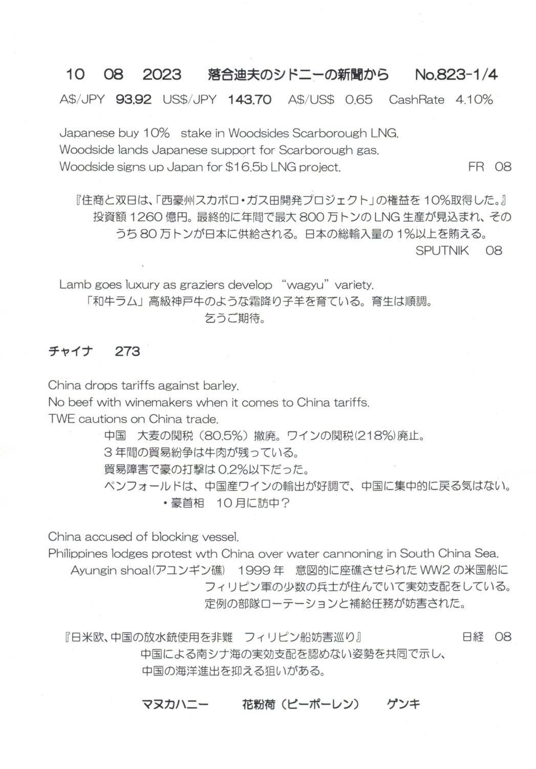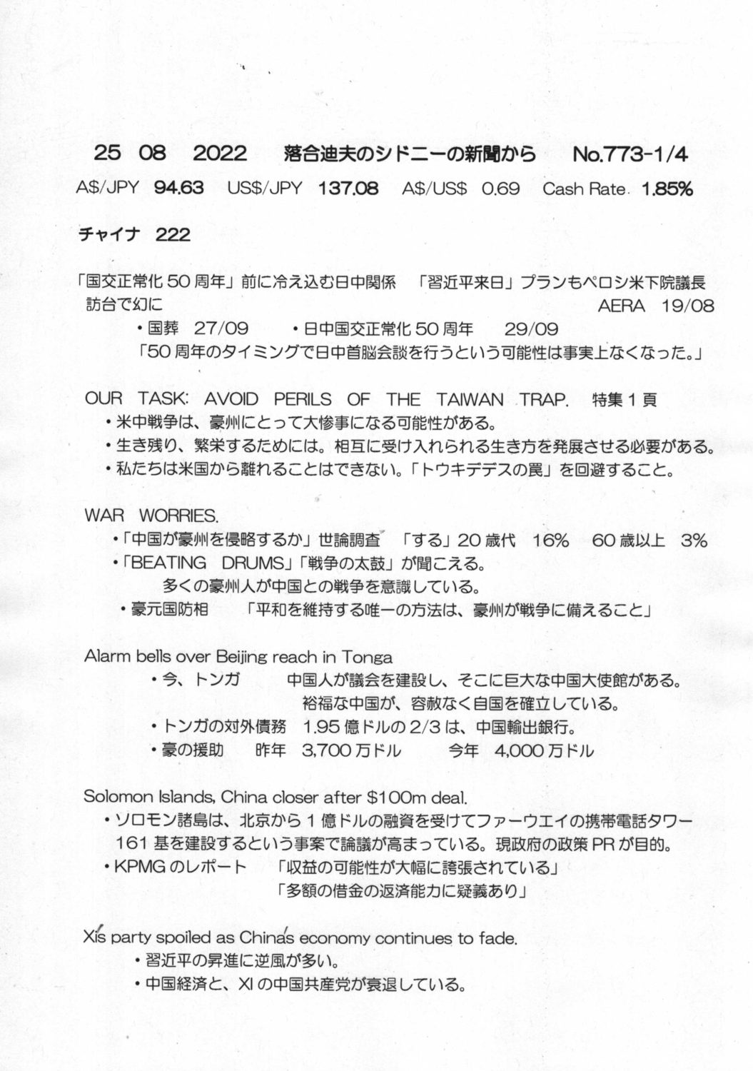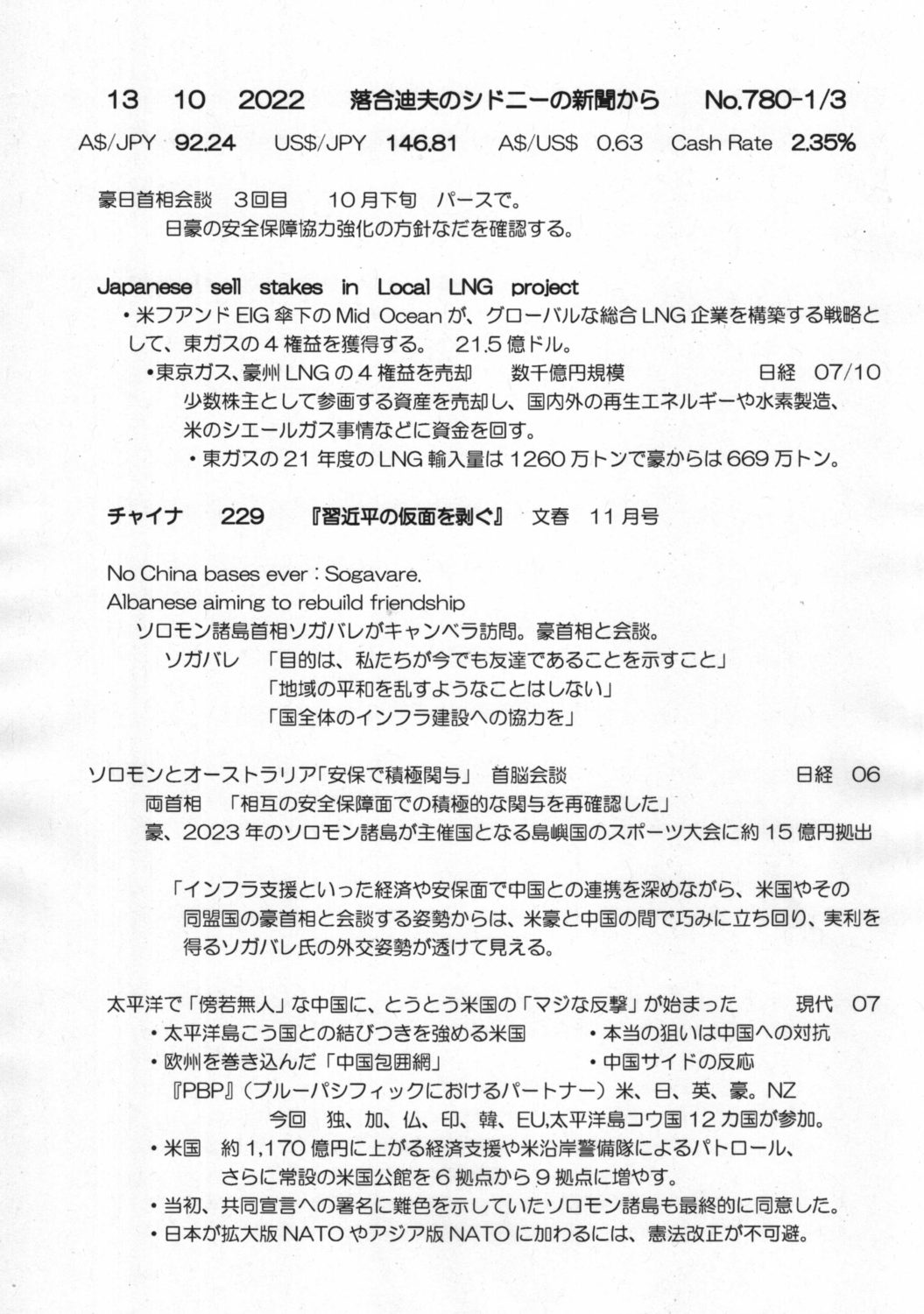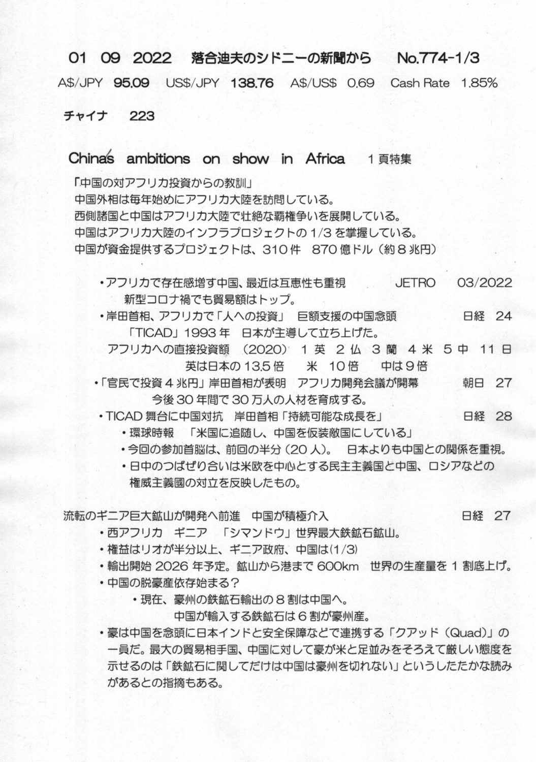 【落合迪夫のシドニーの新聞から】