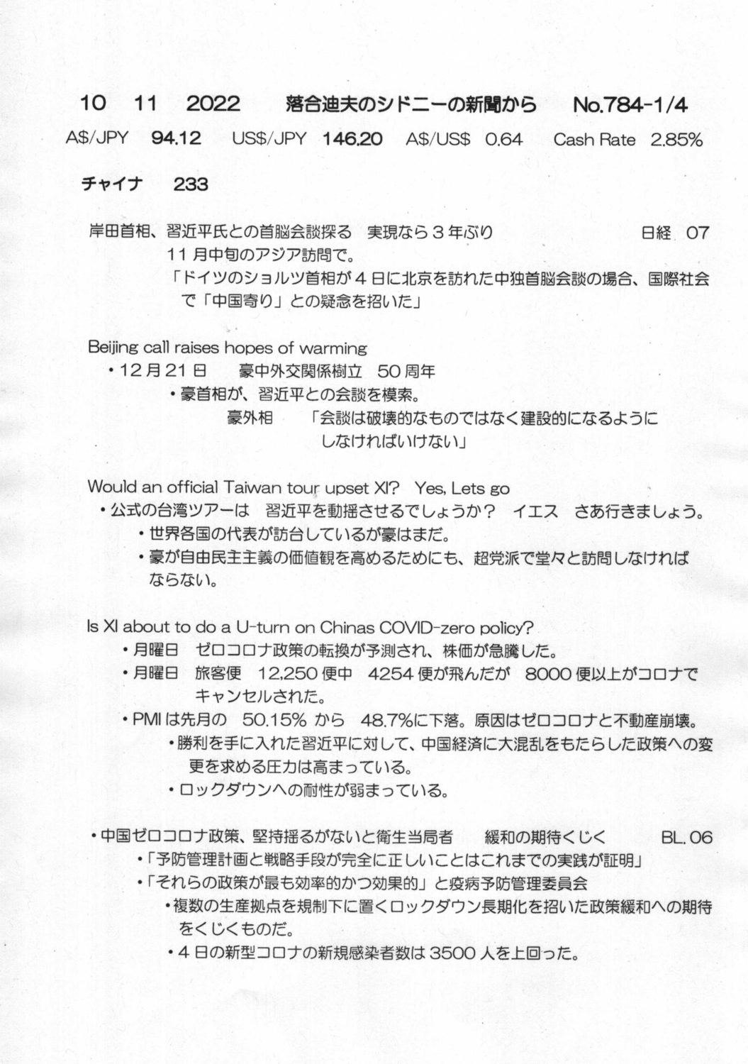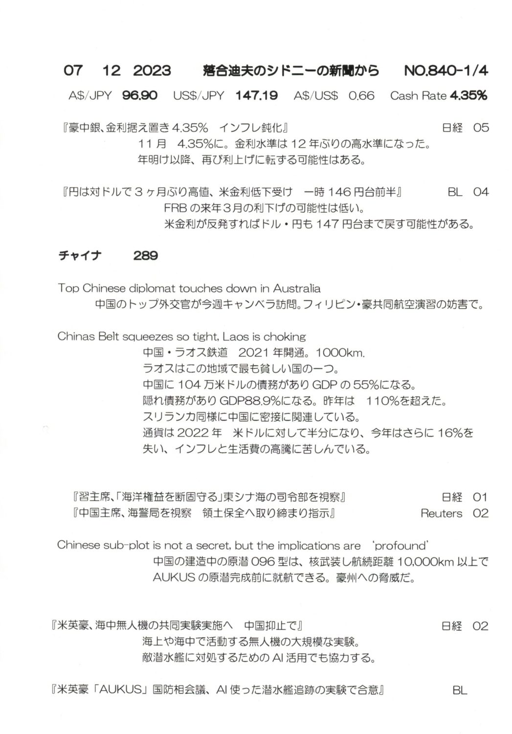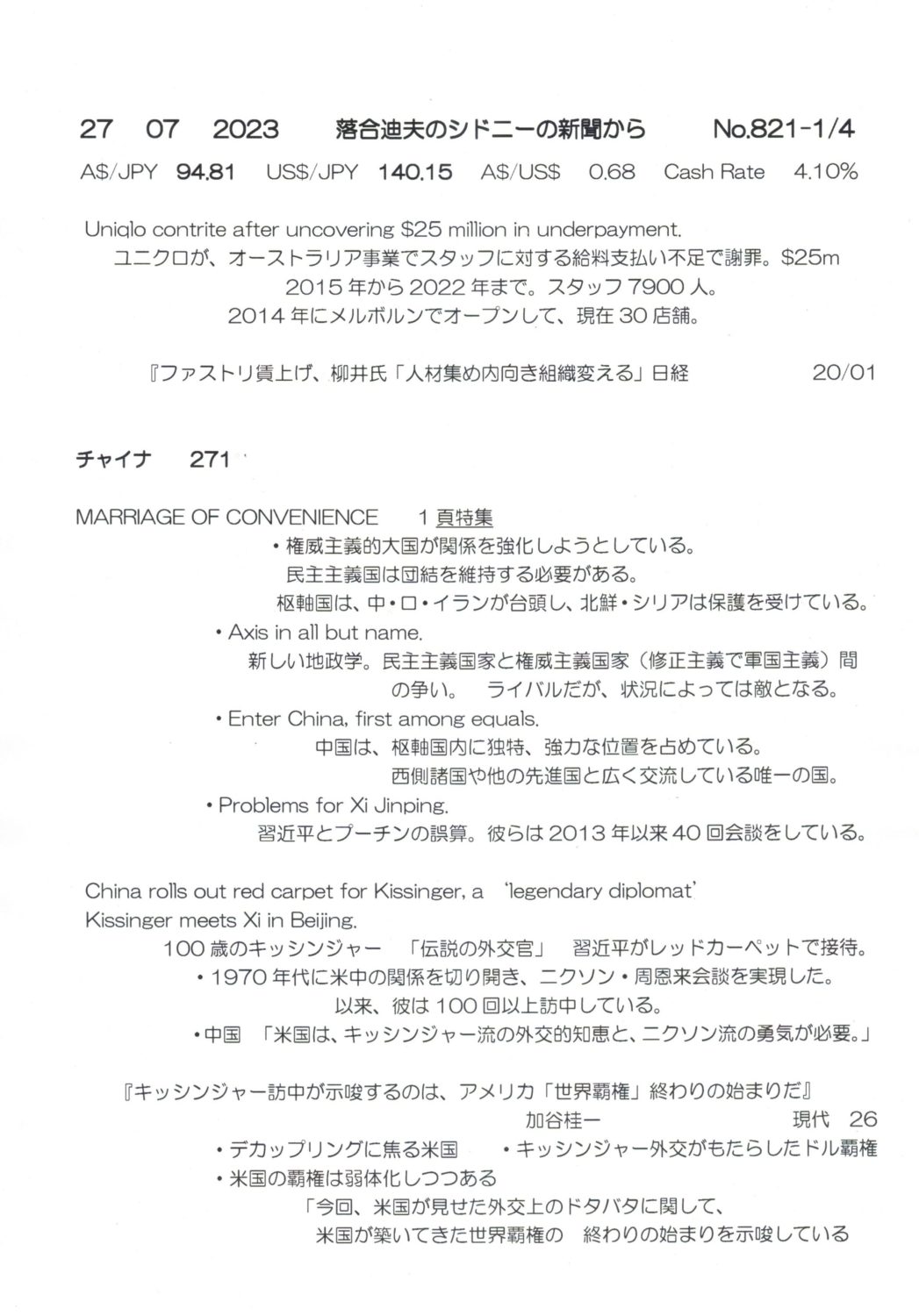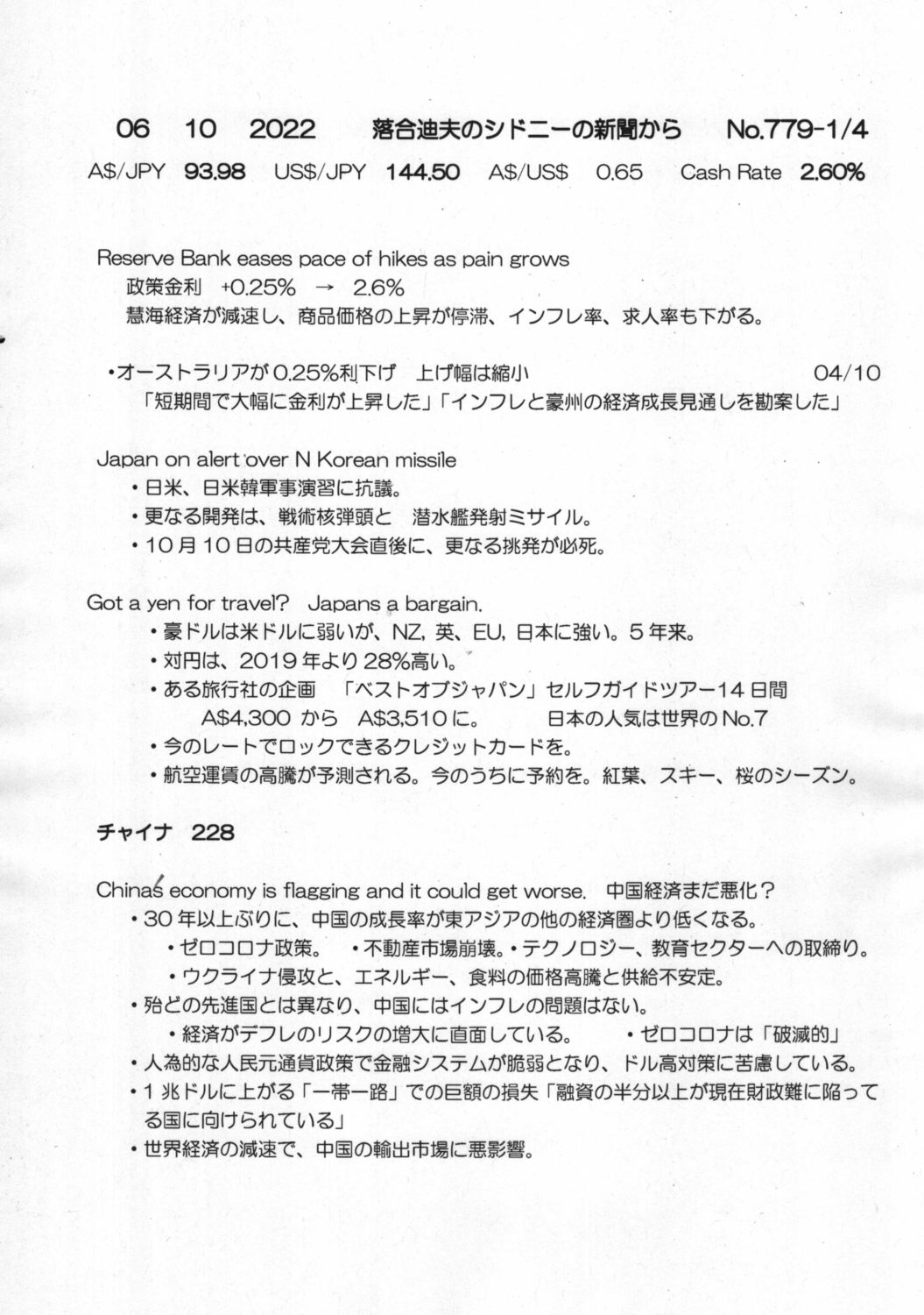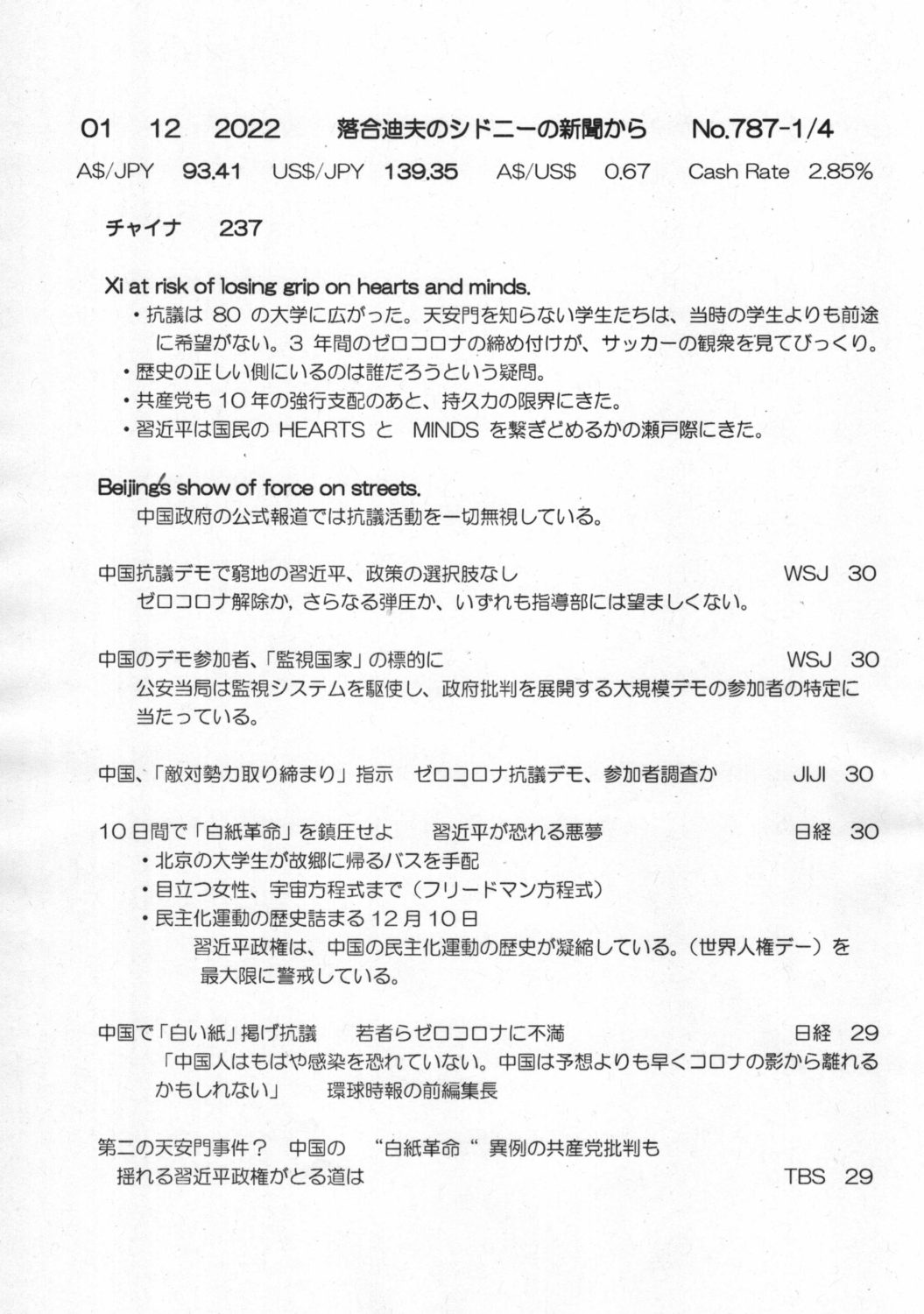 【落合迪夫のシドニーの新聞から】