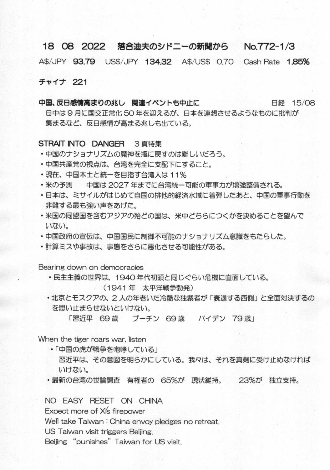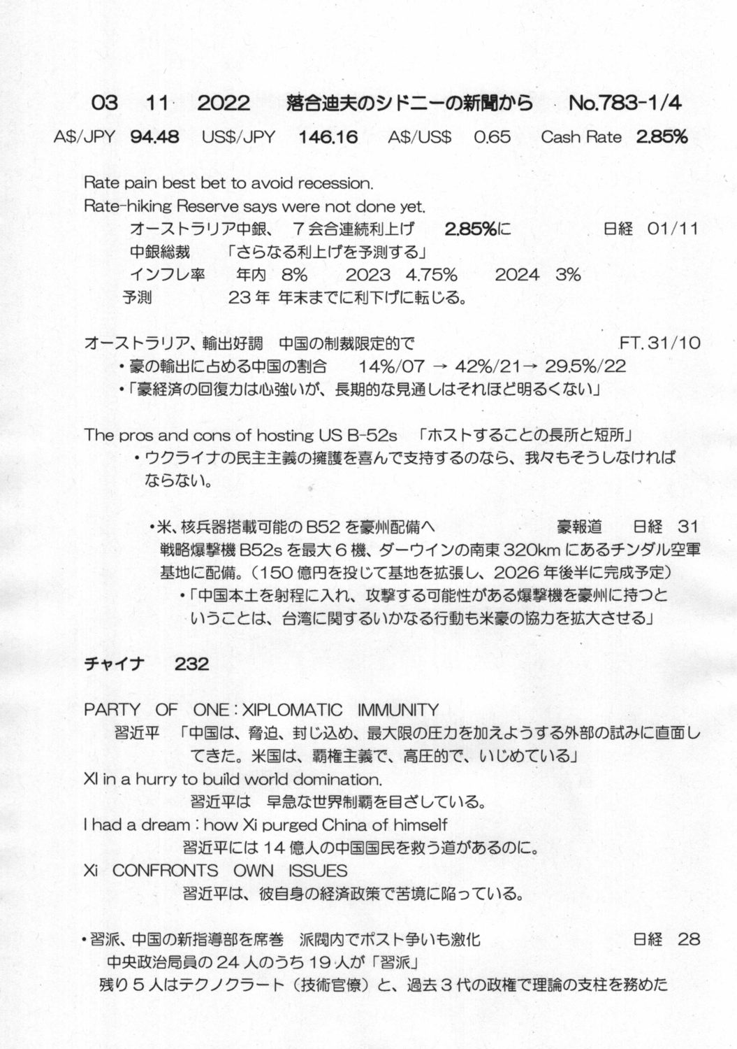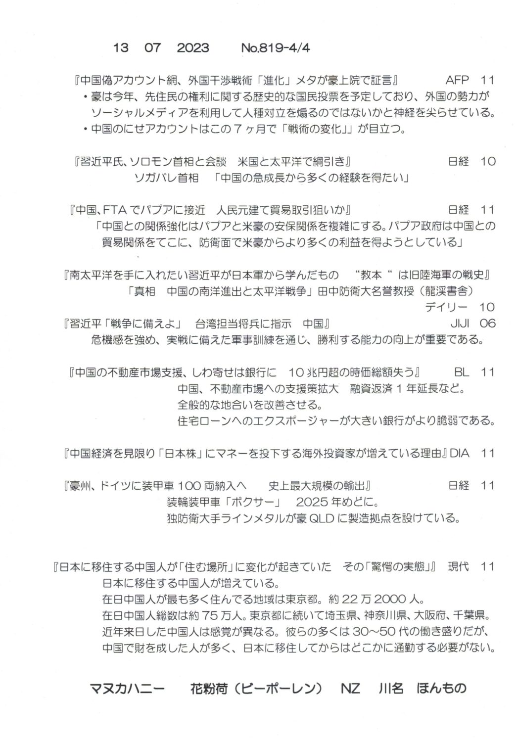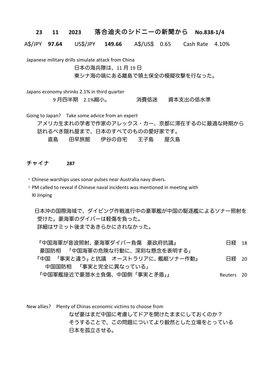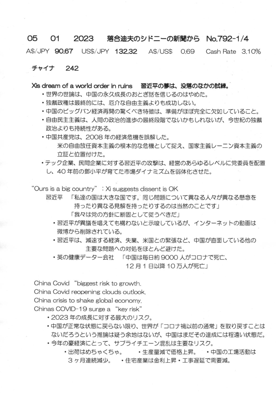 【落合迪夫のシドニーの新聞から】