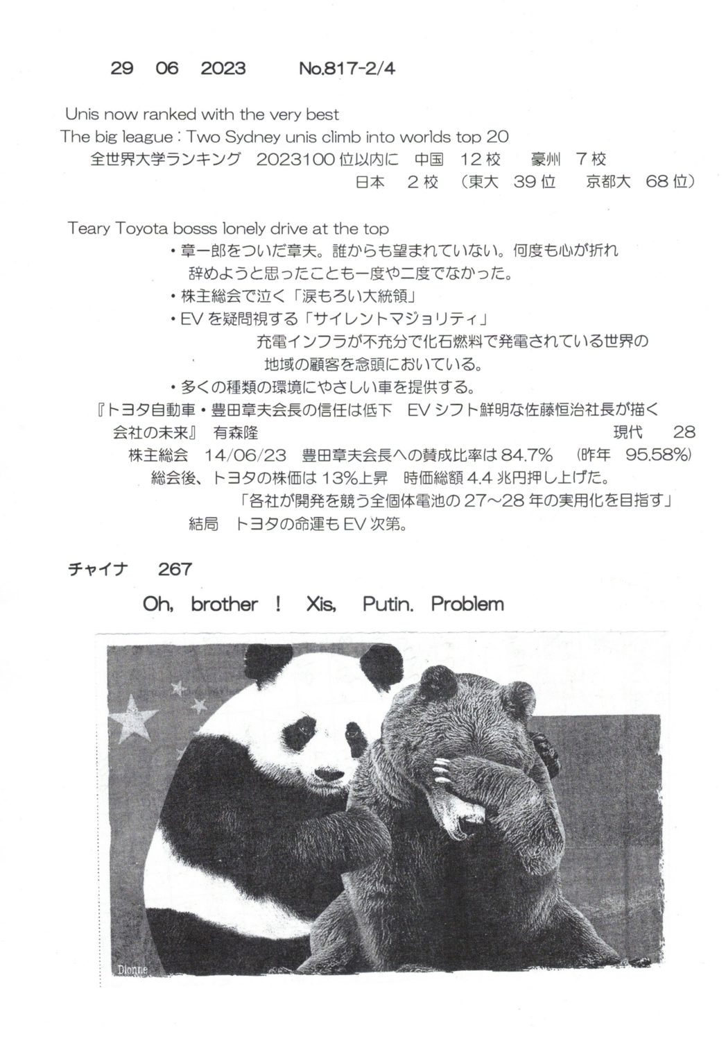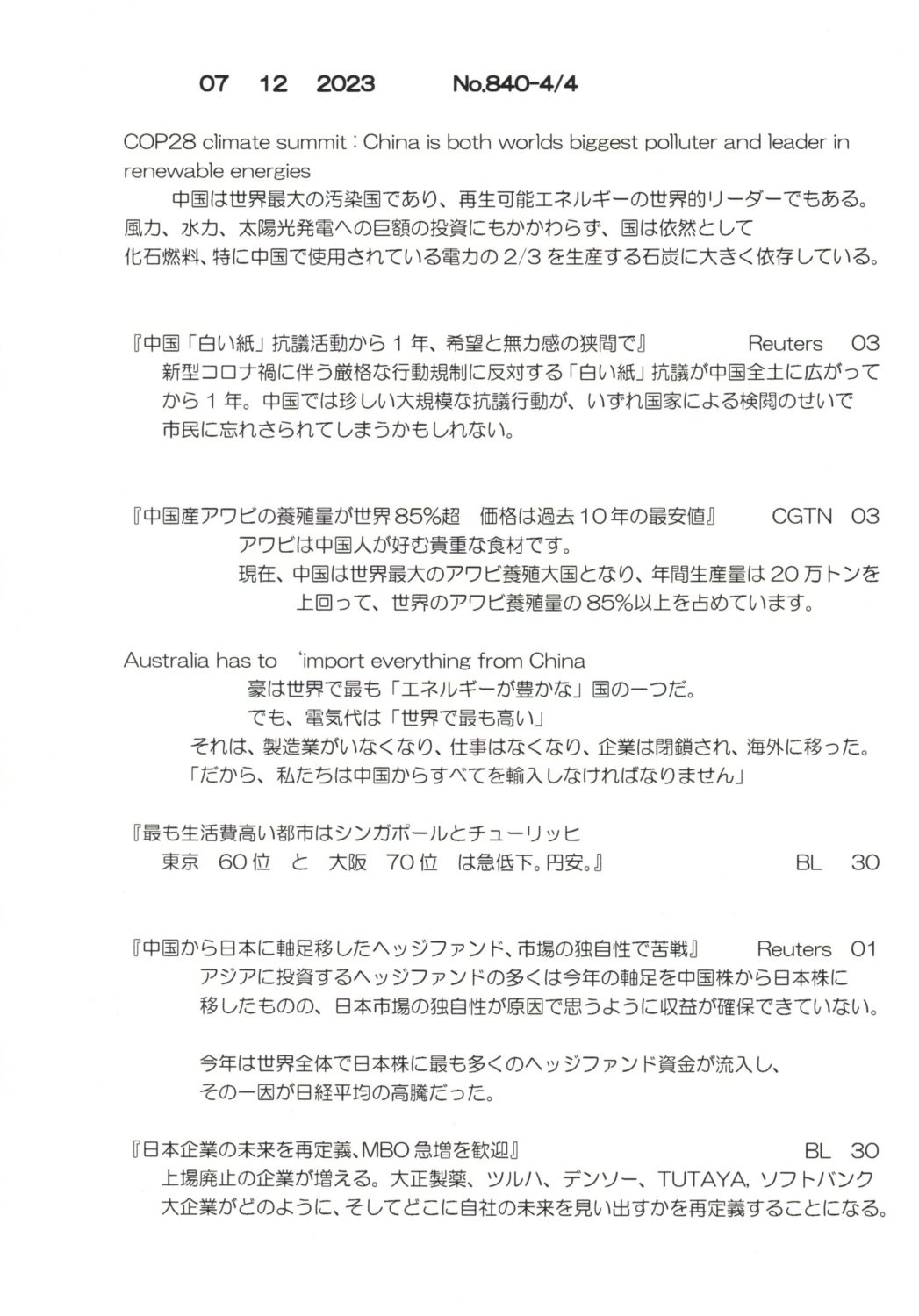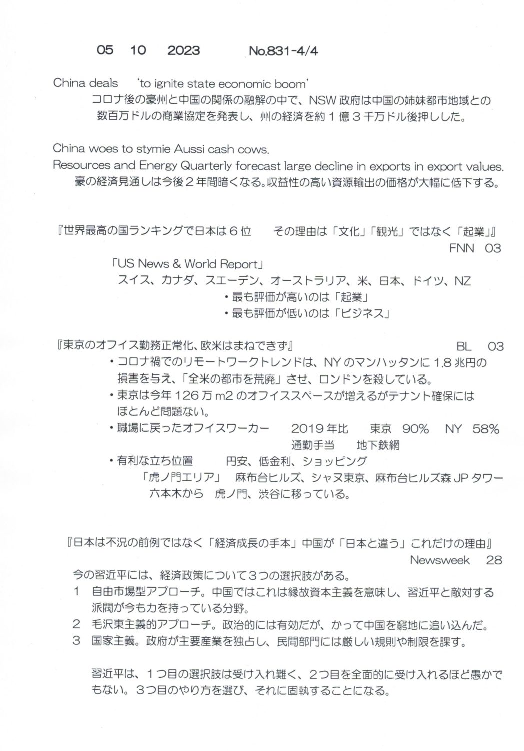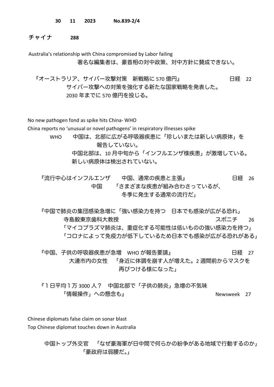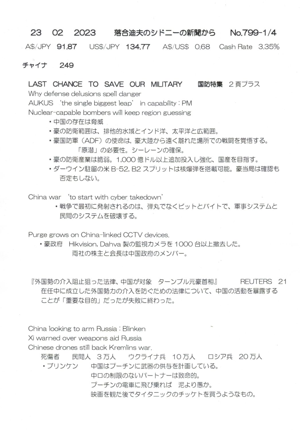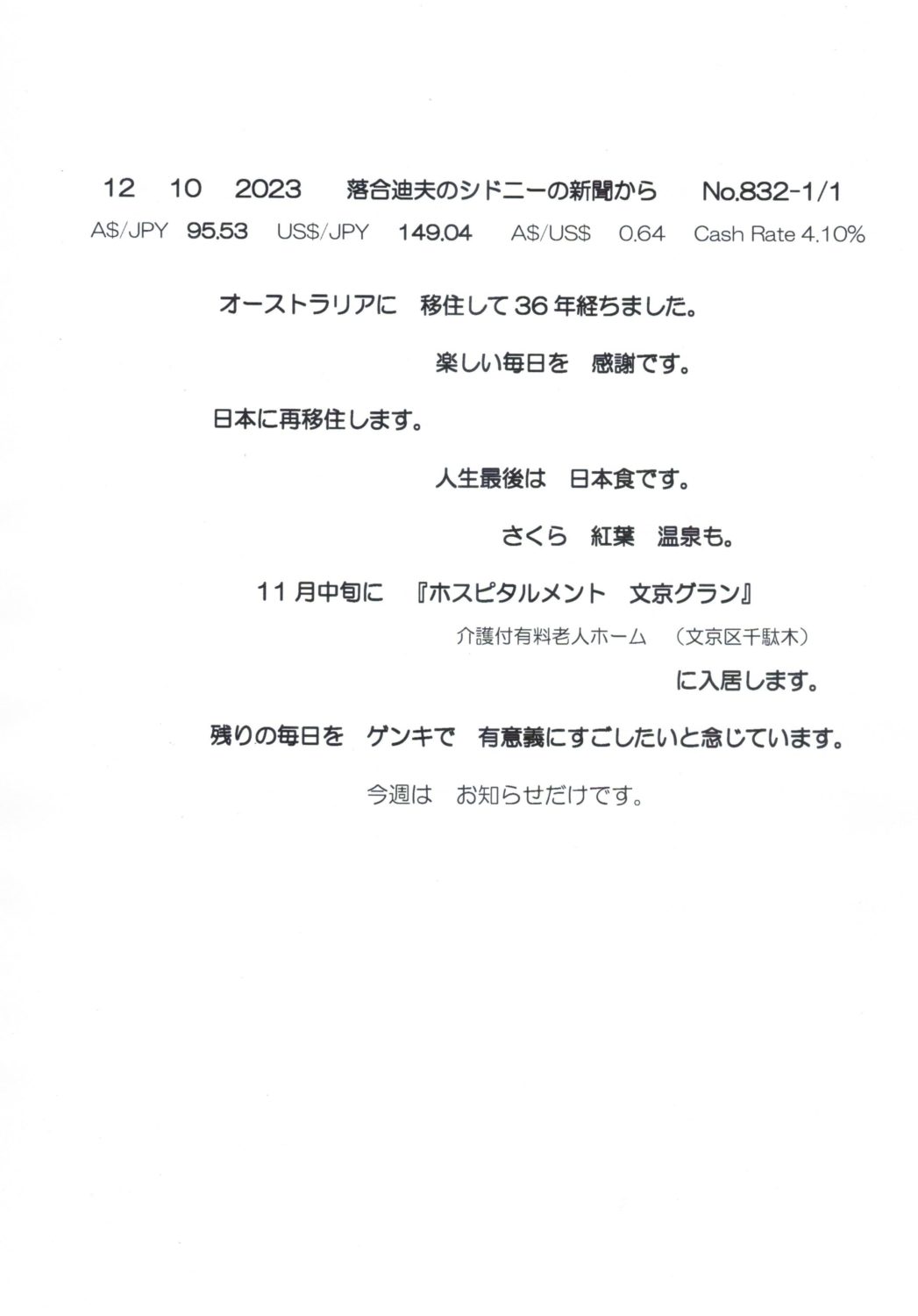 【落合迪夫のシドニーの新聞から】