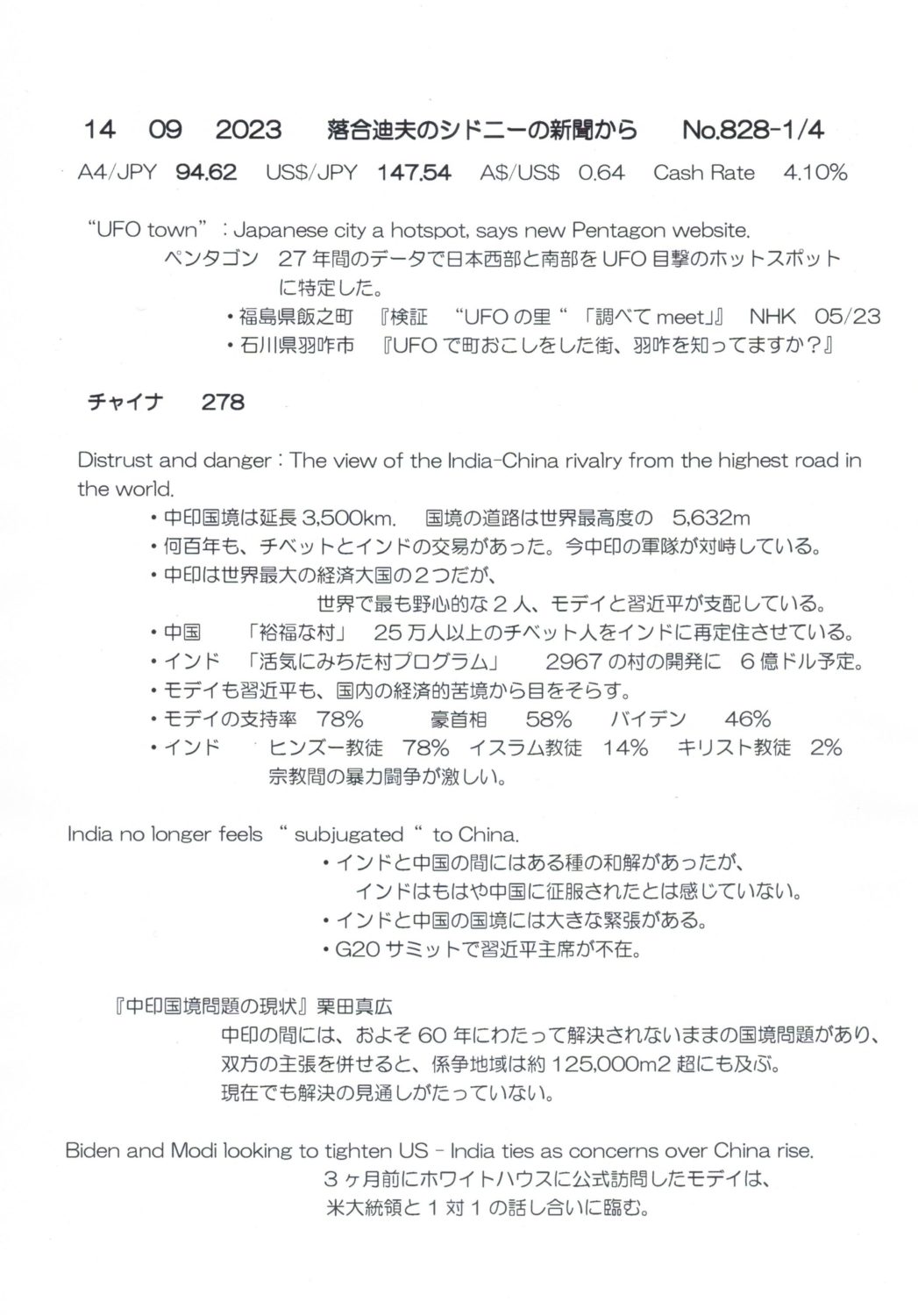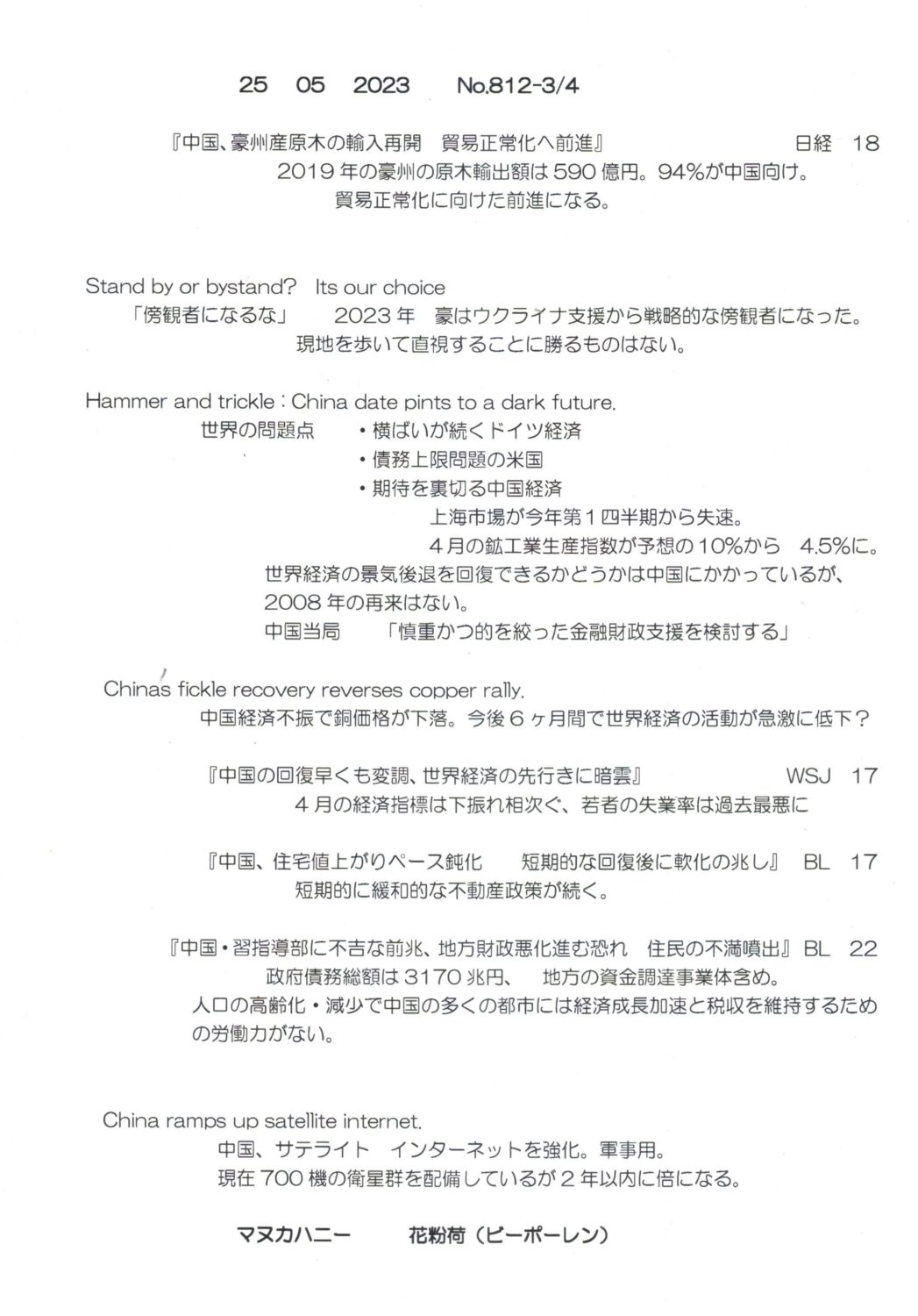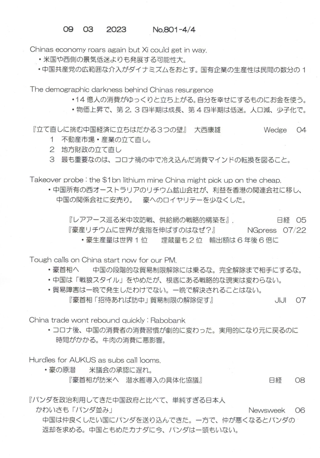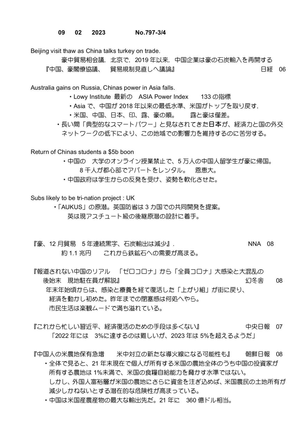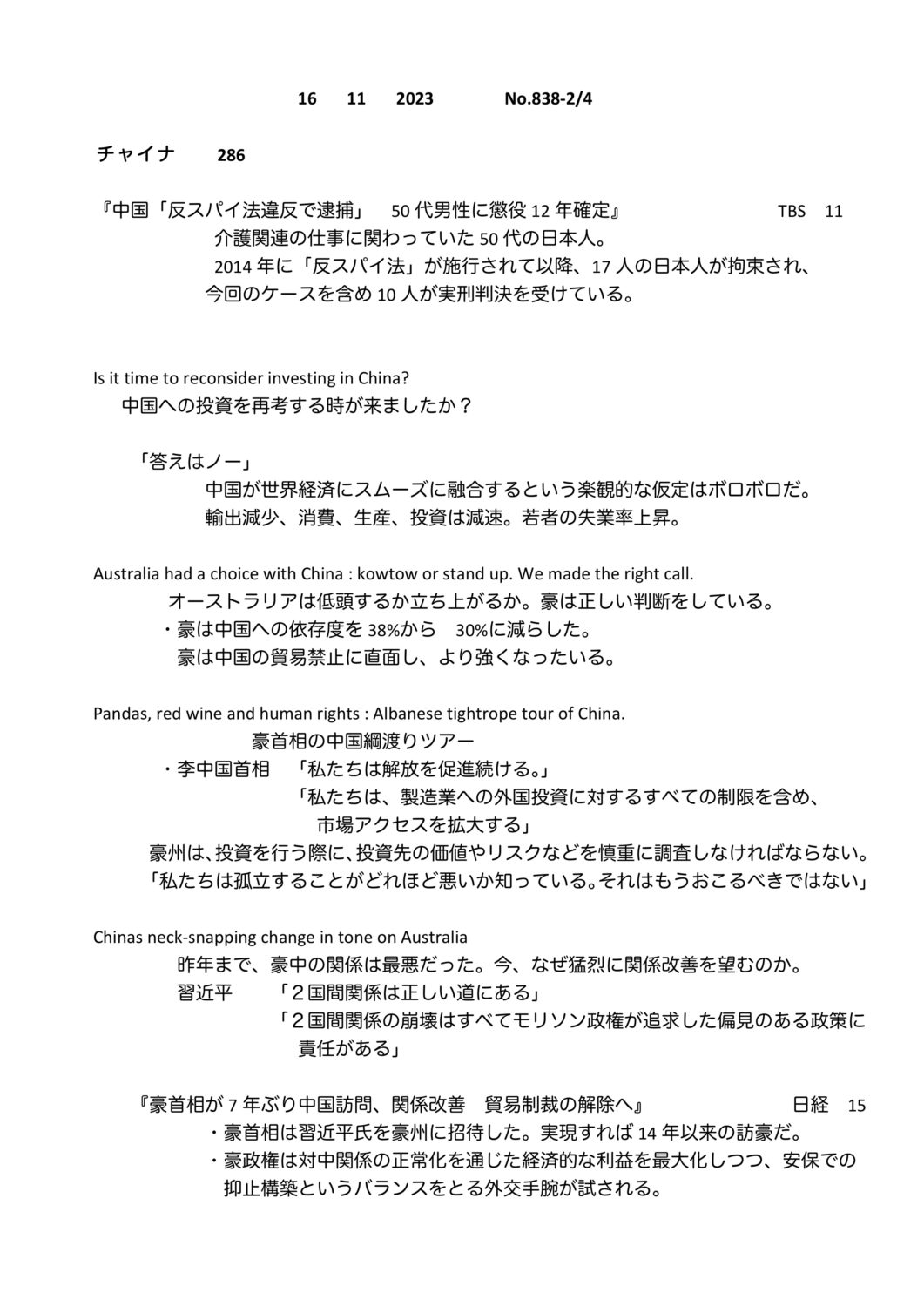 【落合迪夫のシドニーの新聞から】