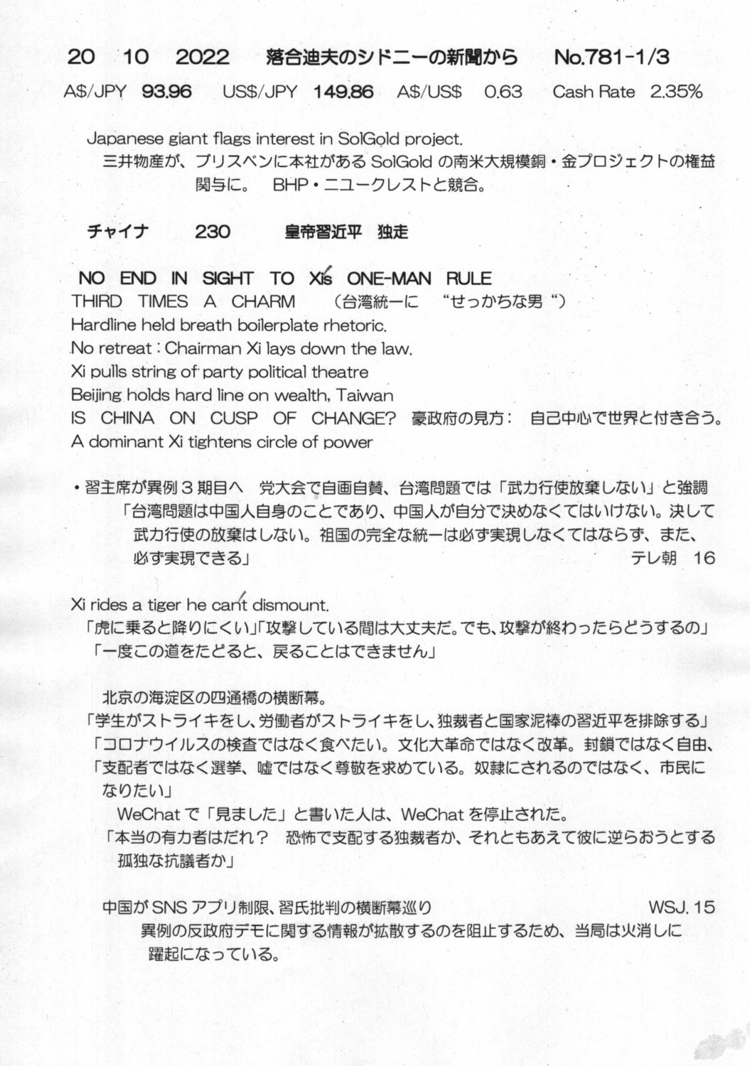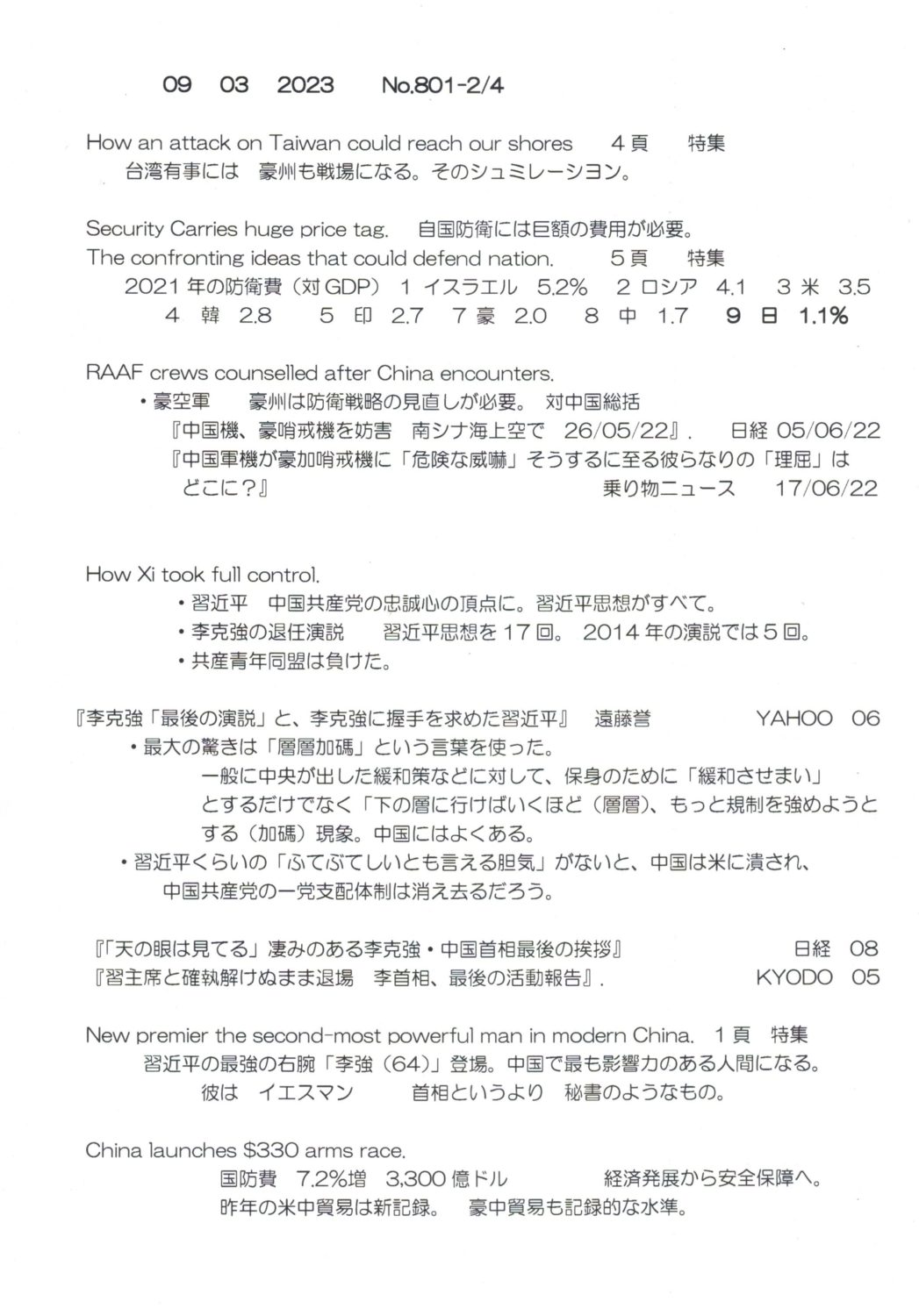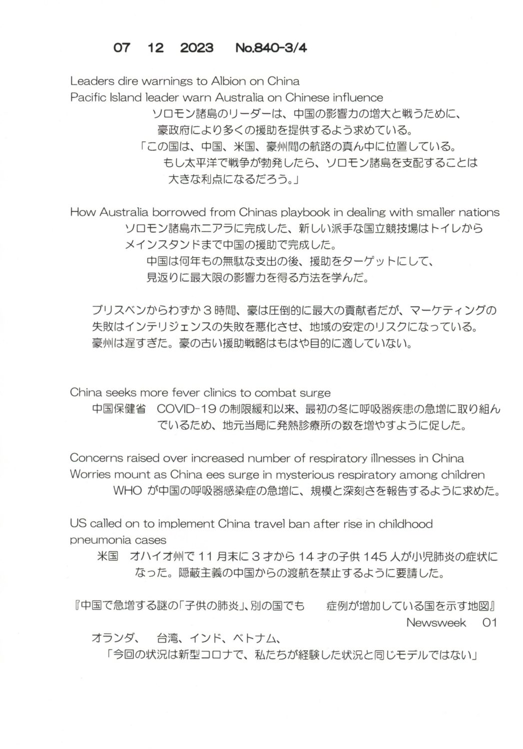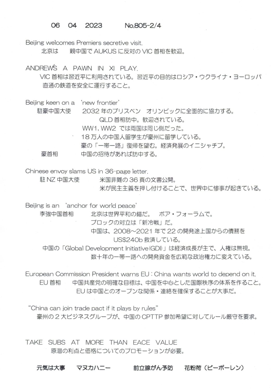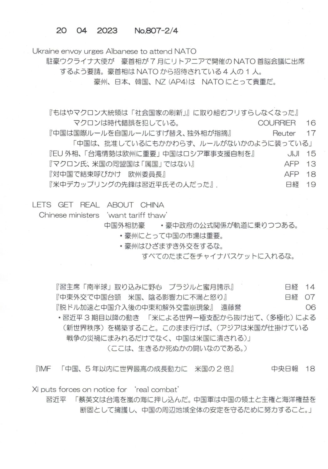 【落合迪夫のシドニーの新聞から】