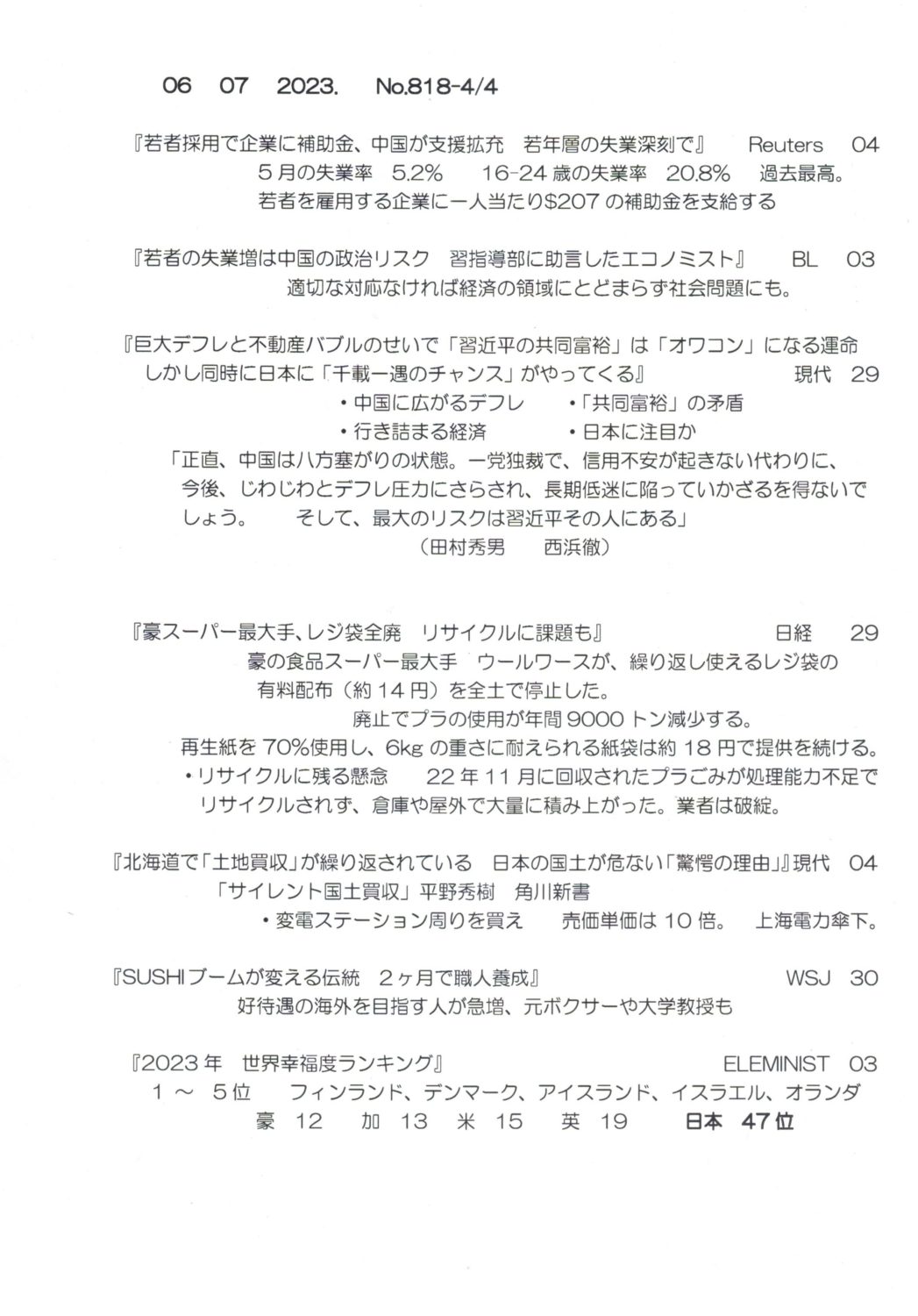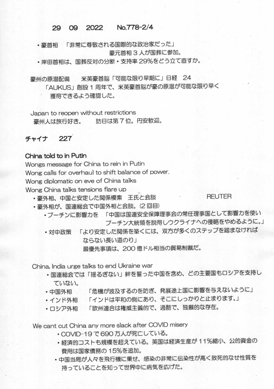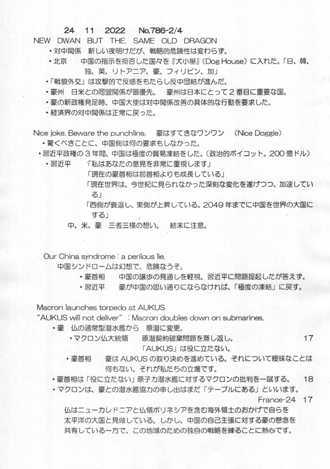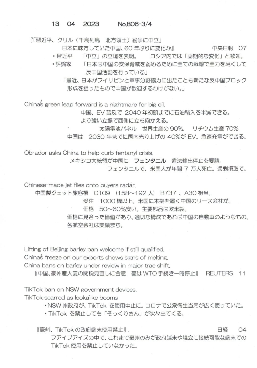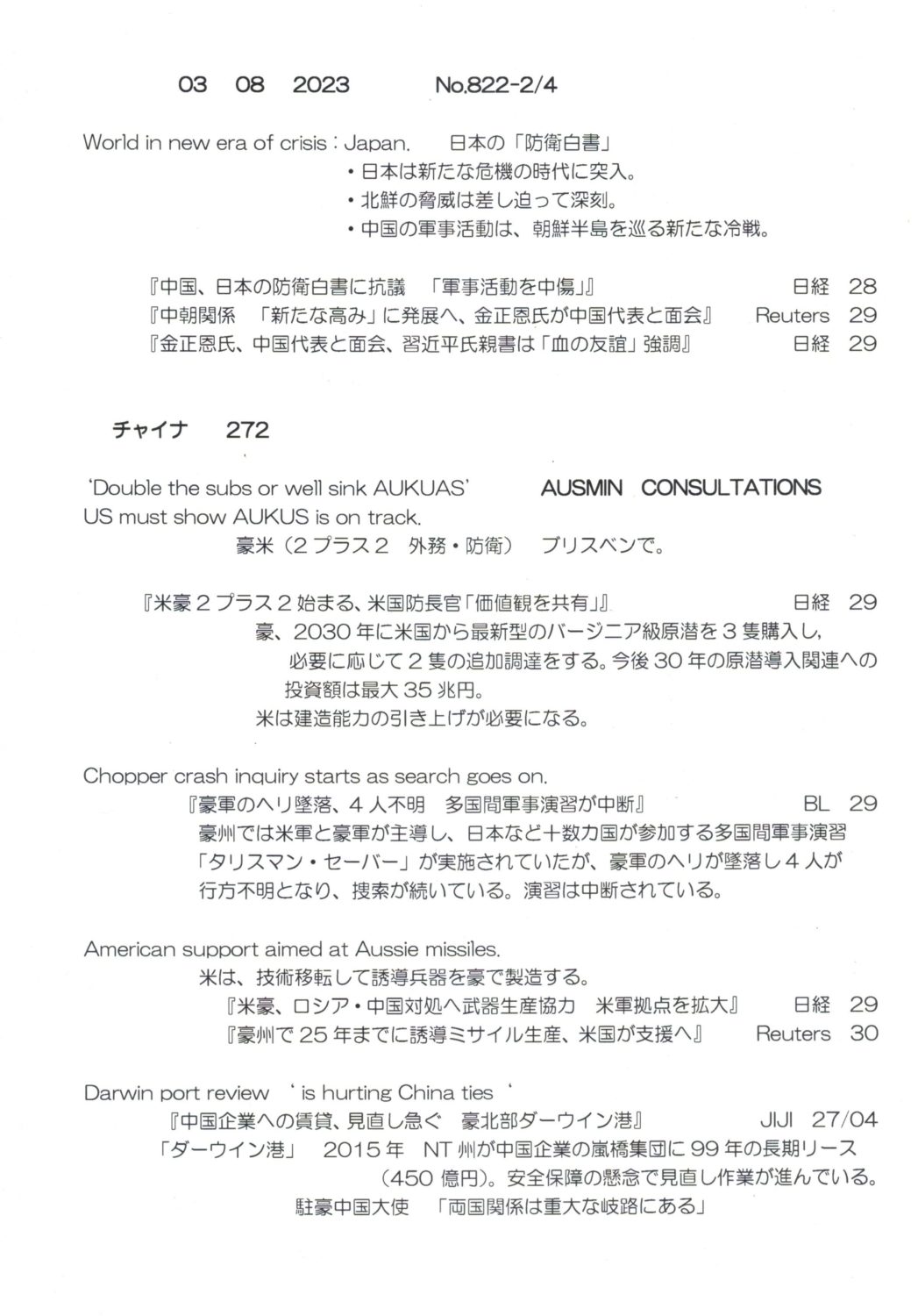【落合迪夫のシドニーの新聞から】