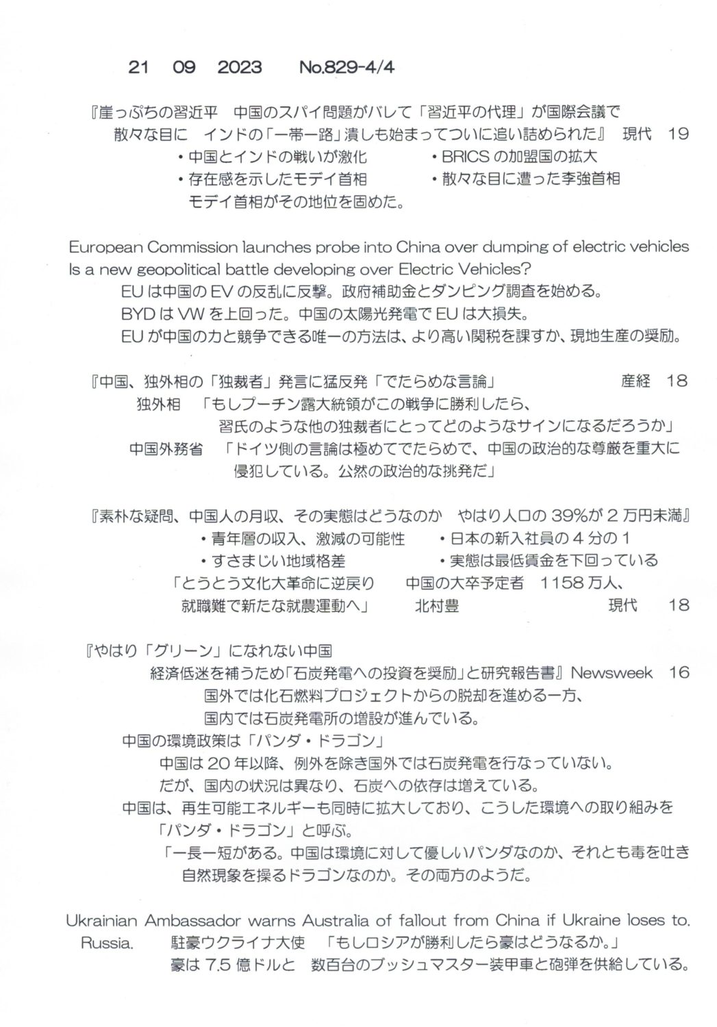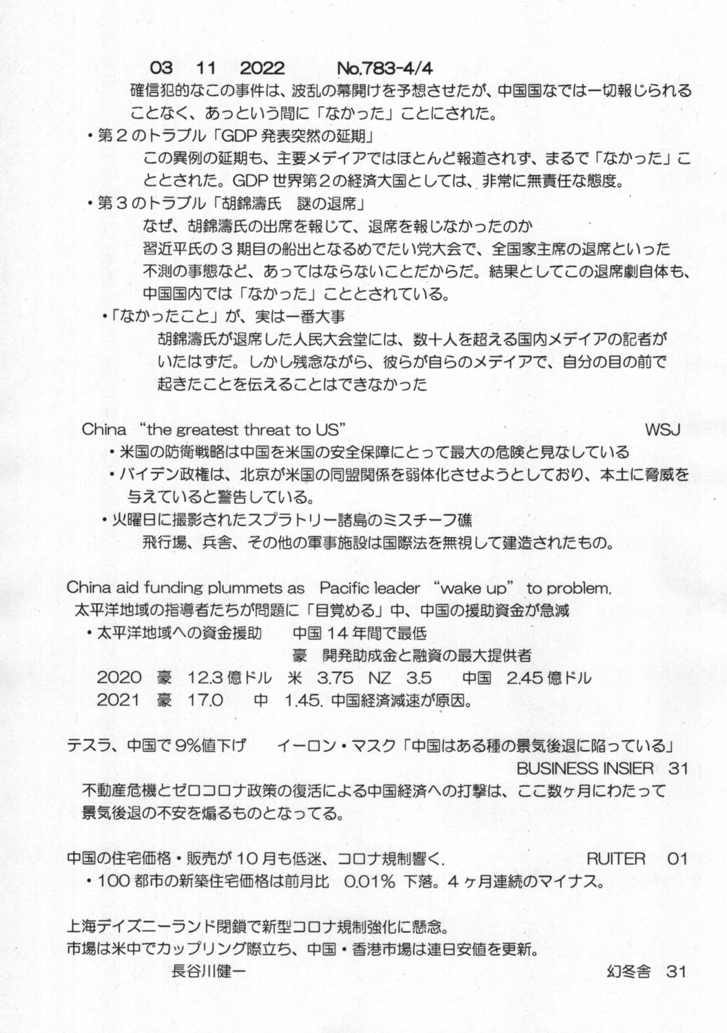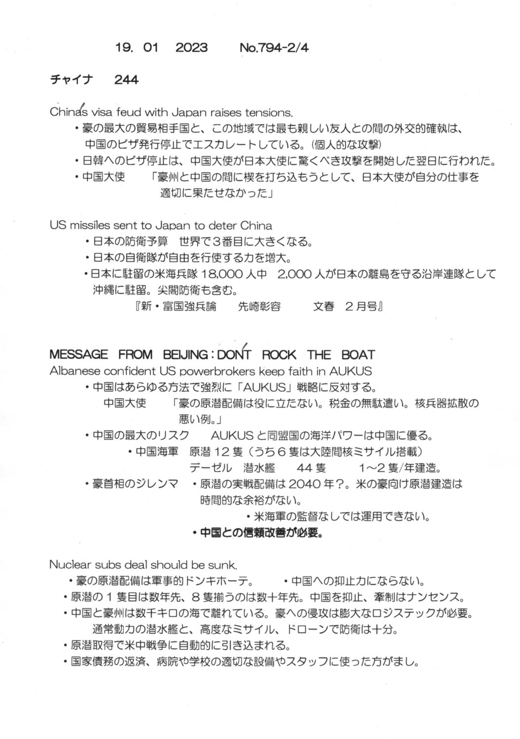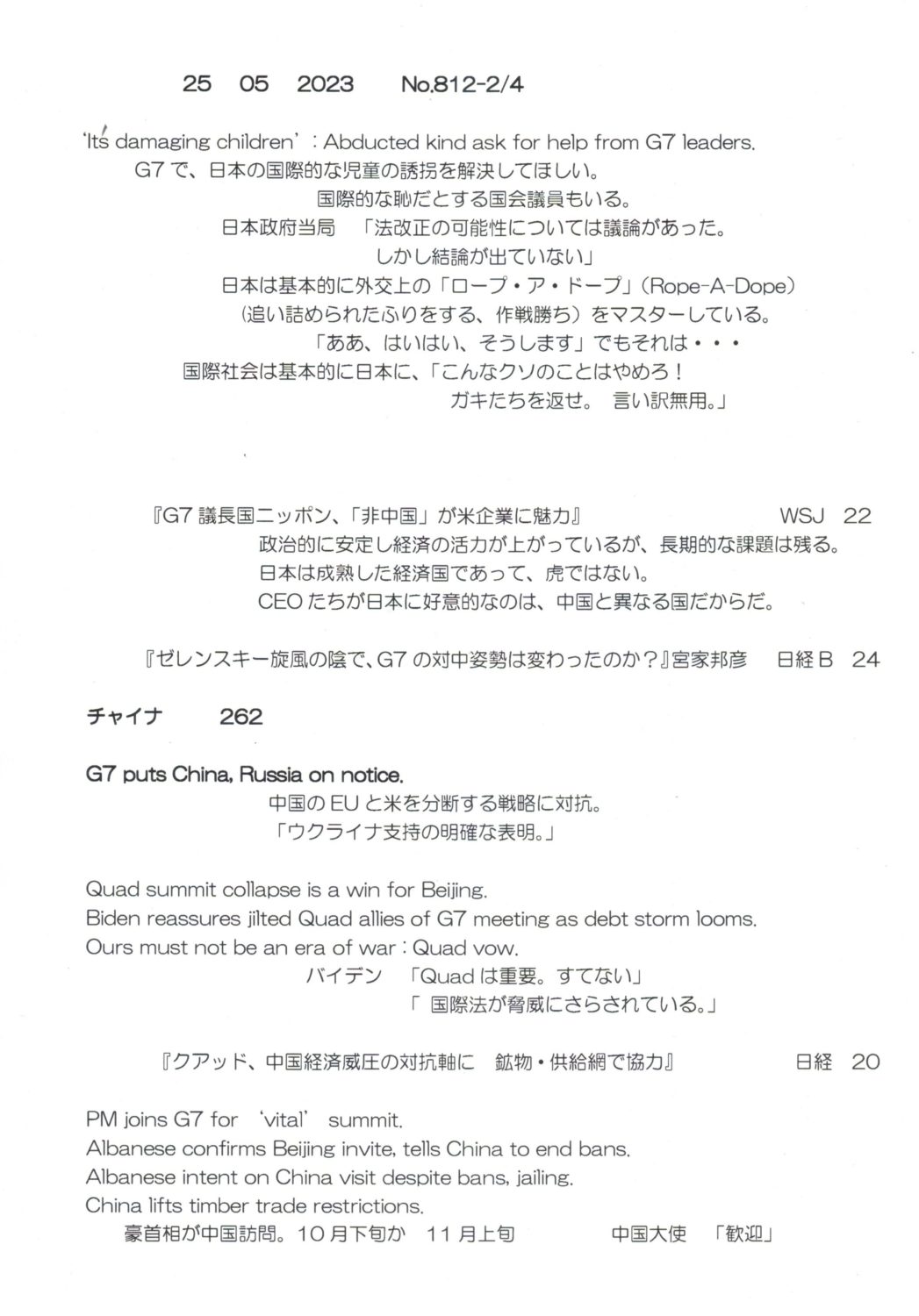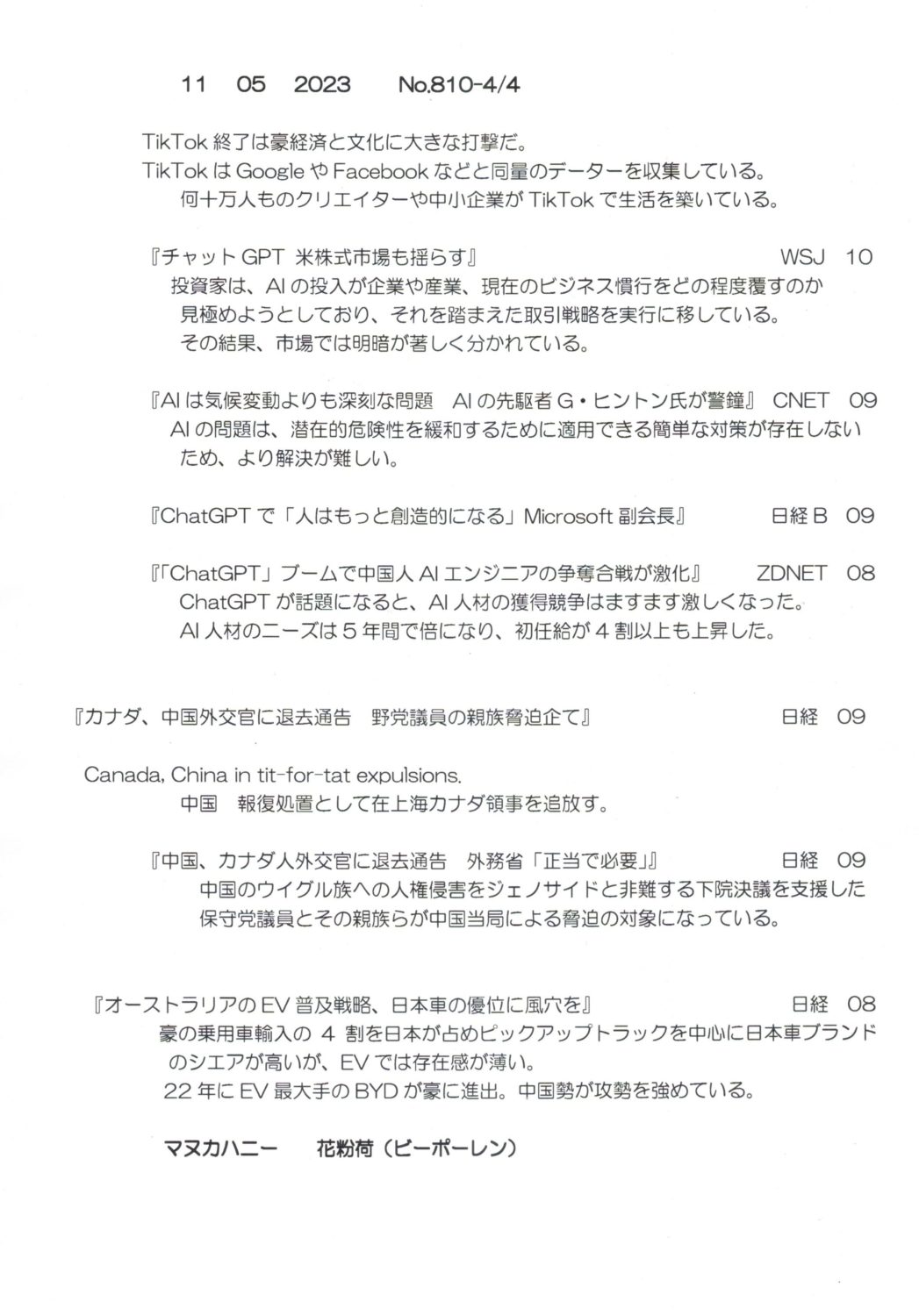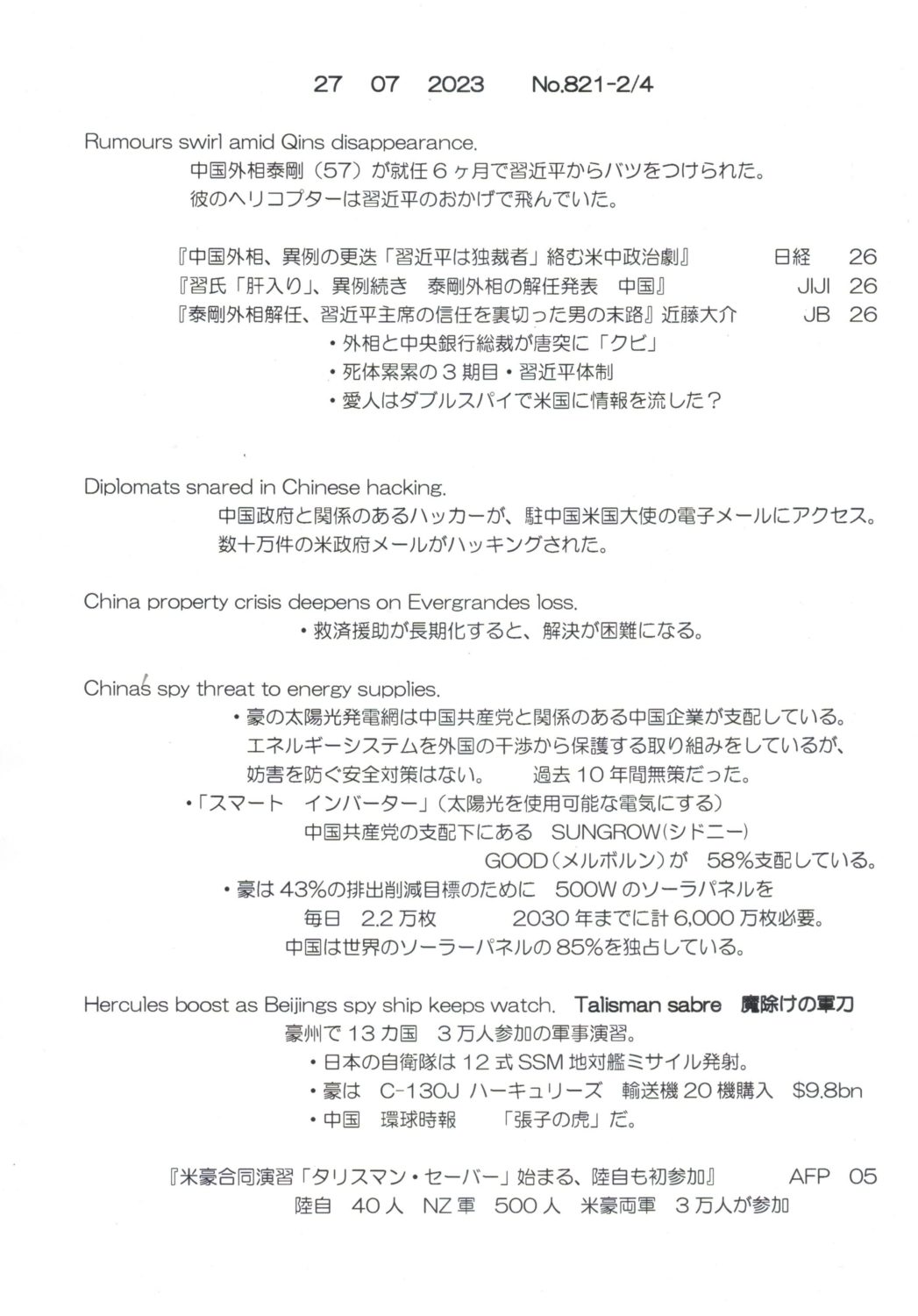 【落合迪夫のシドニーの新聞から】