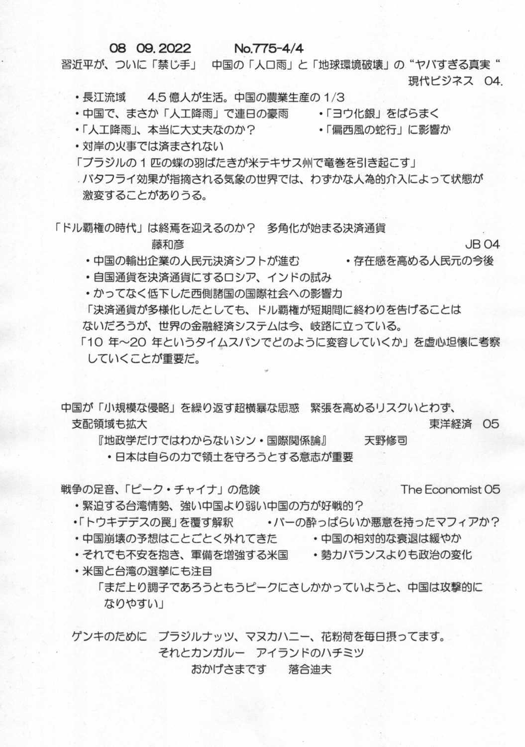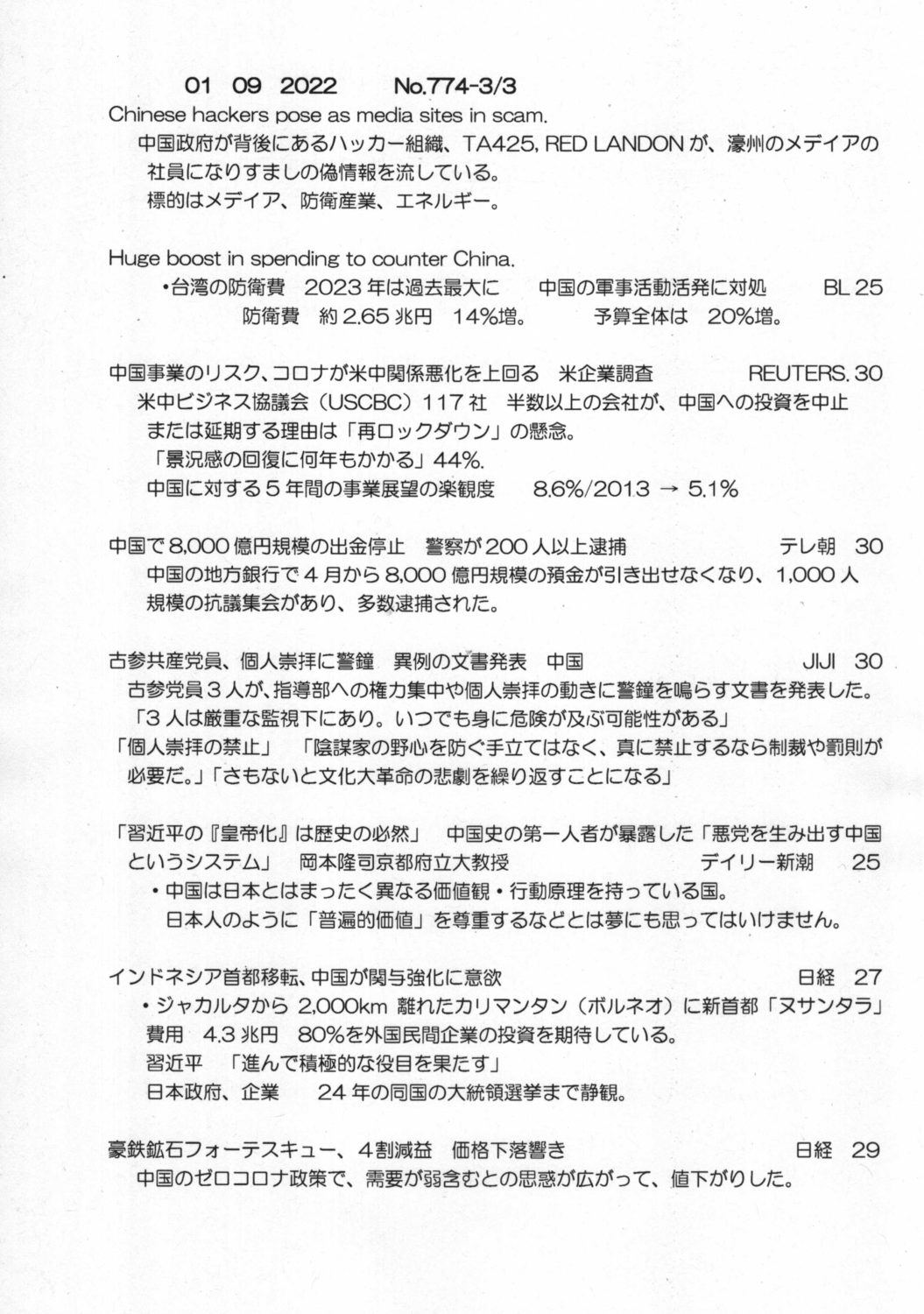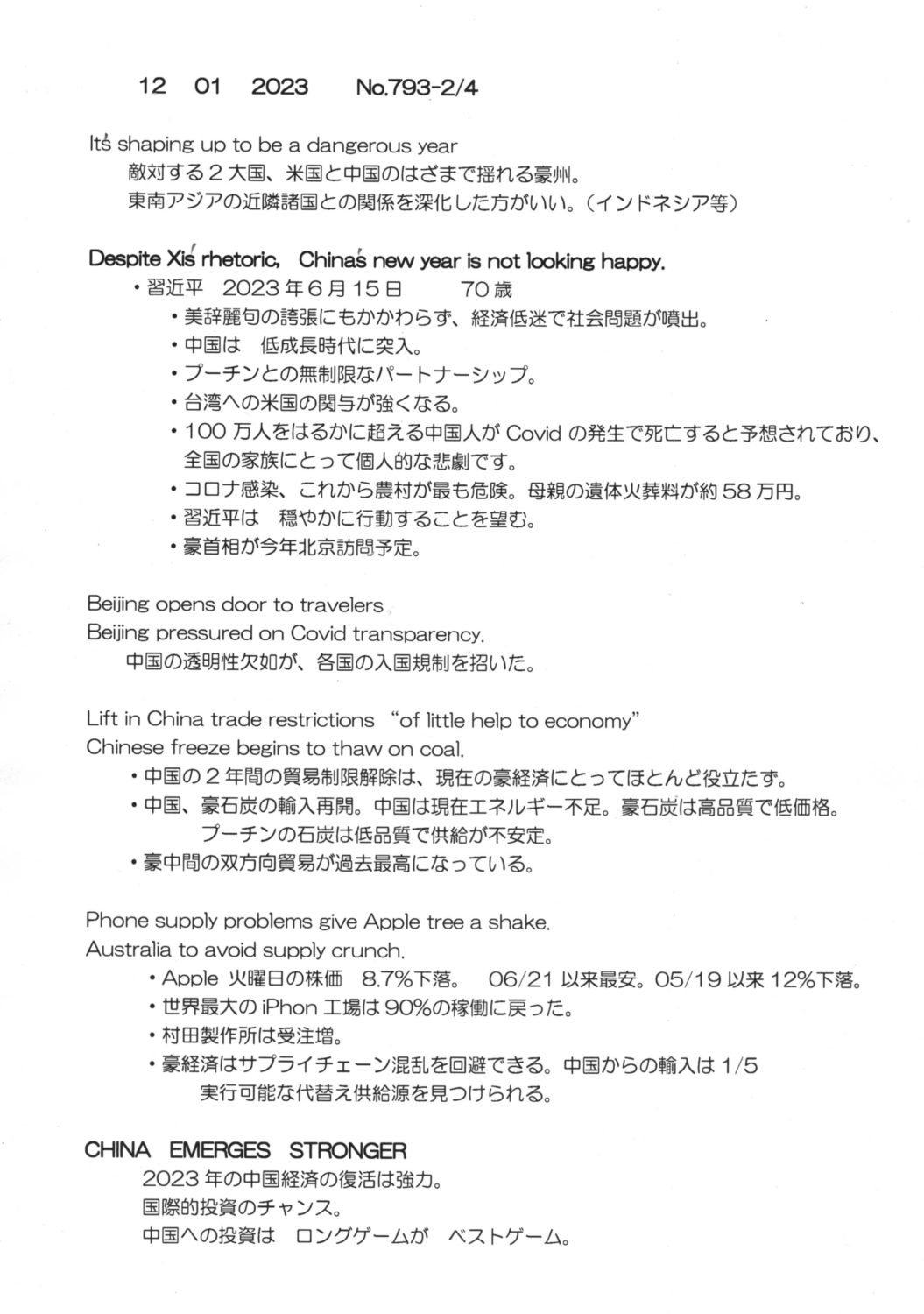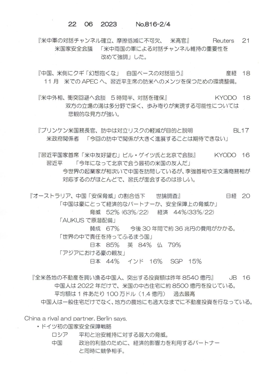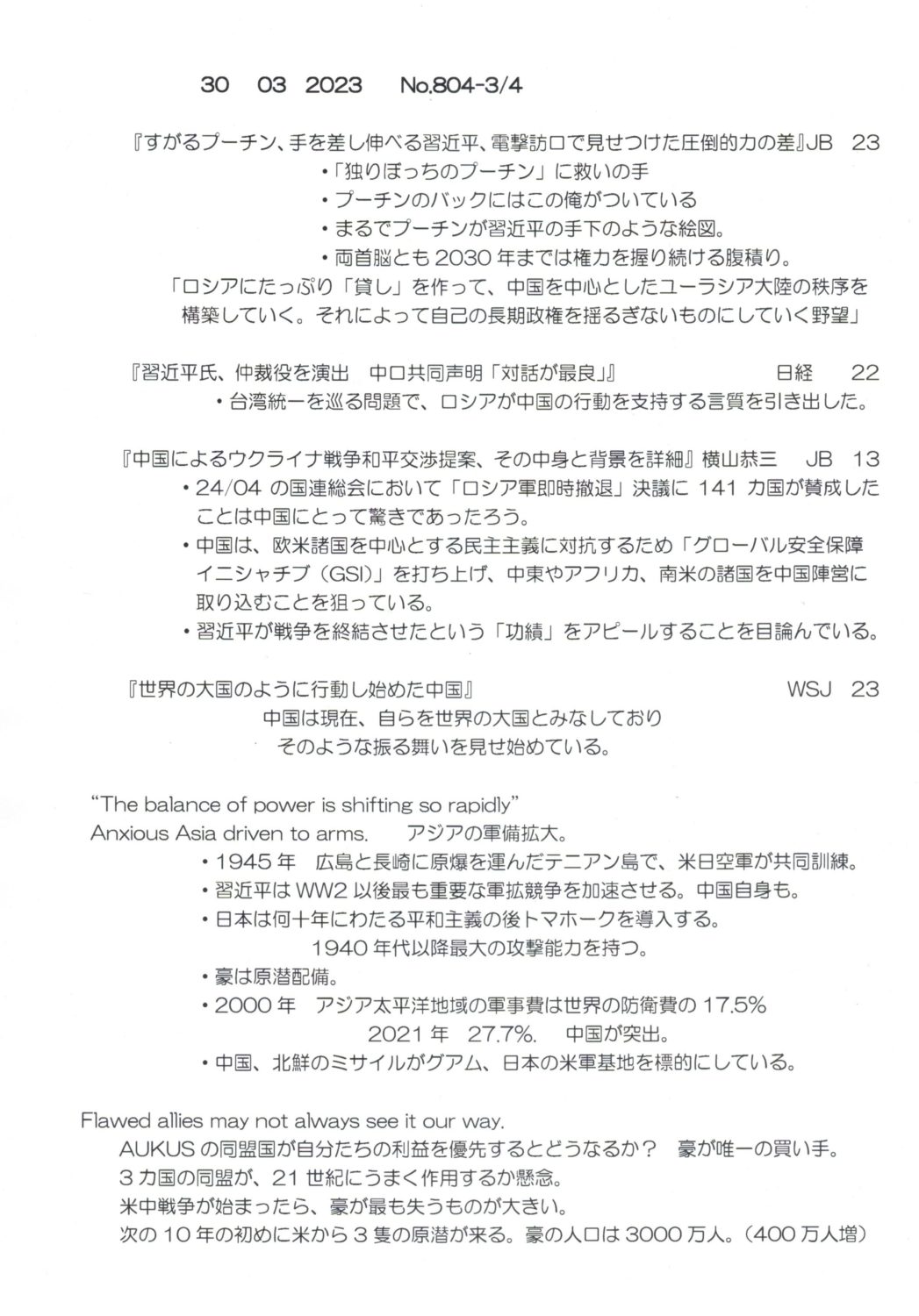 【落合迪夫のシドニーの新聞から】