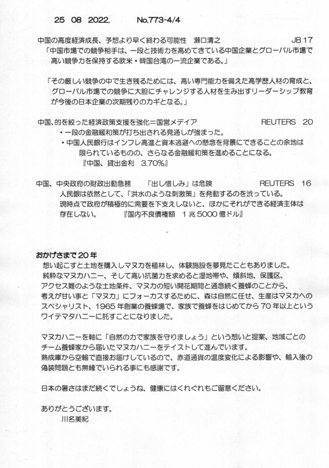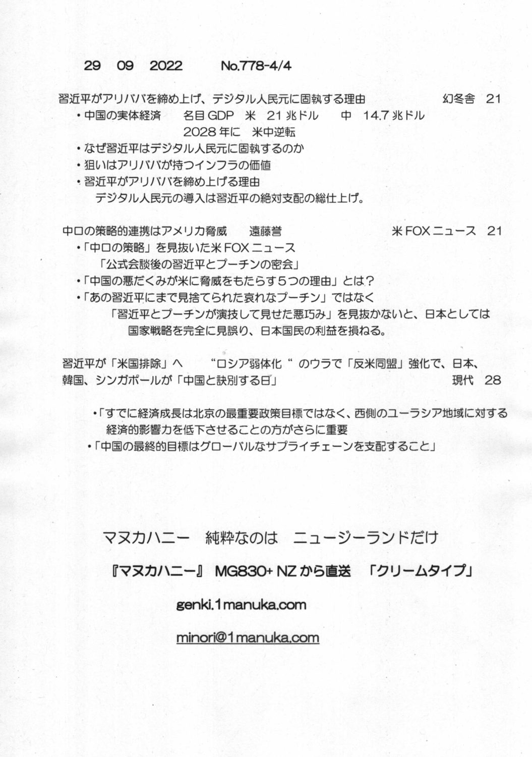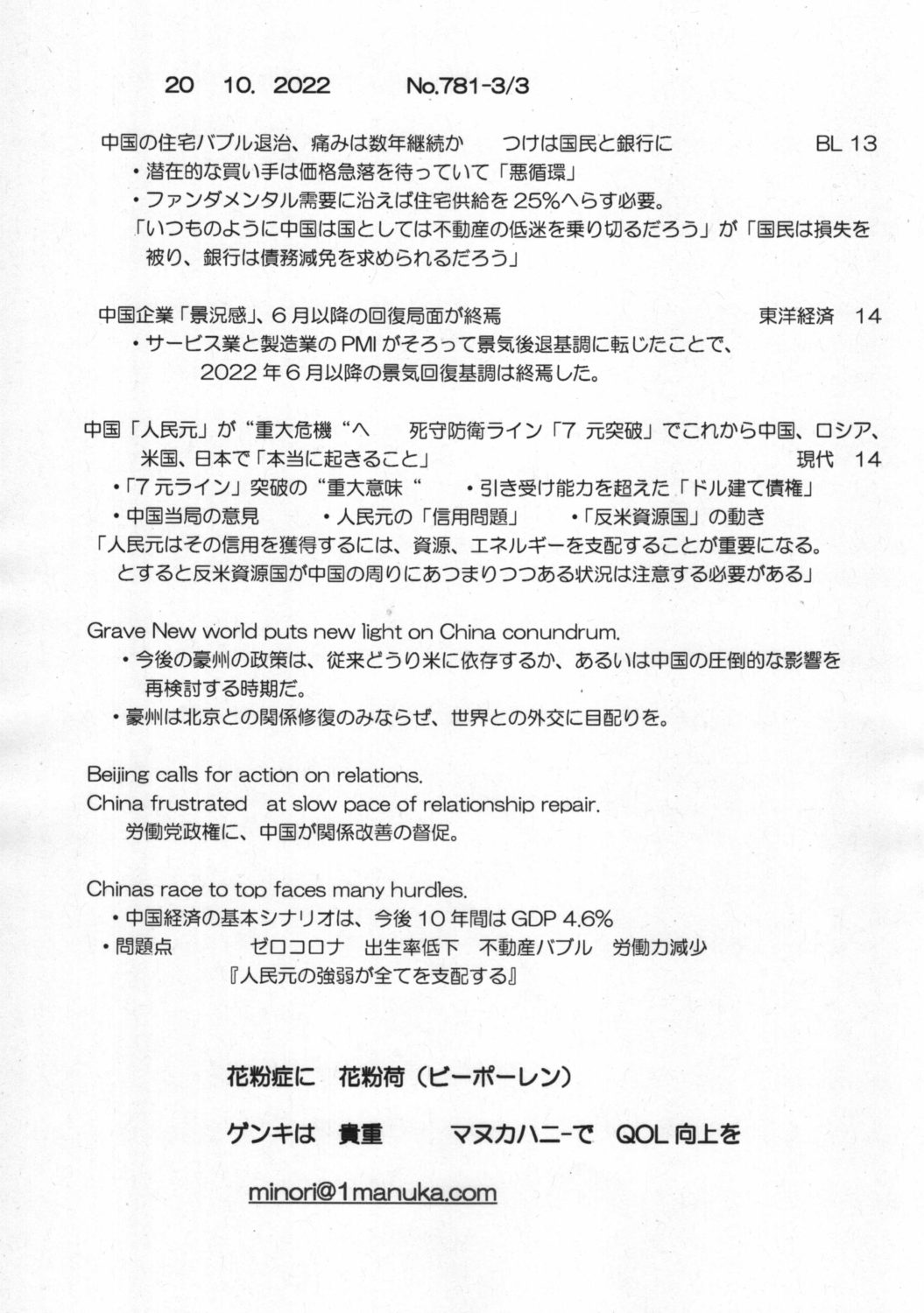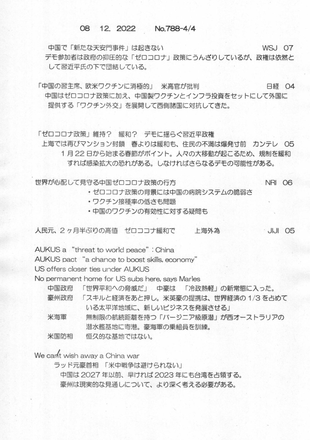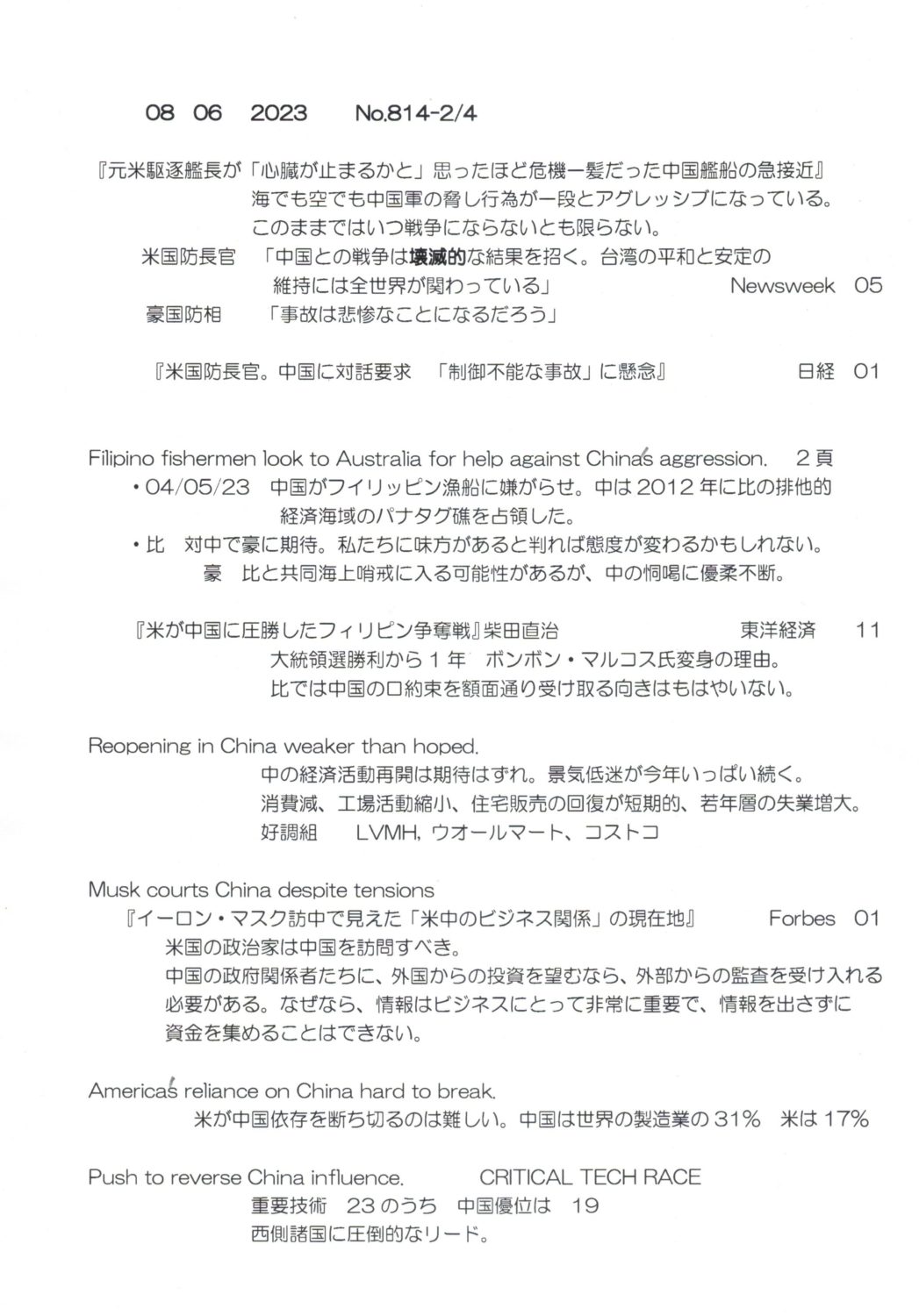【落合迪夫のシドニーの新聞から】